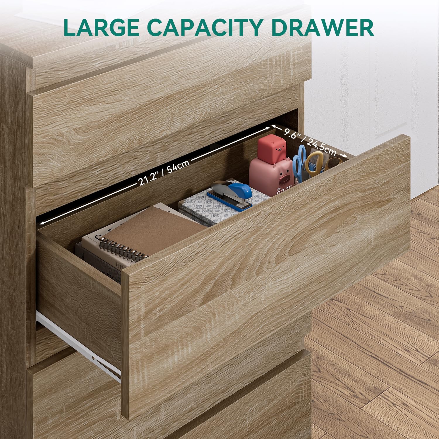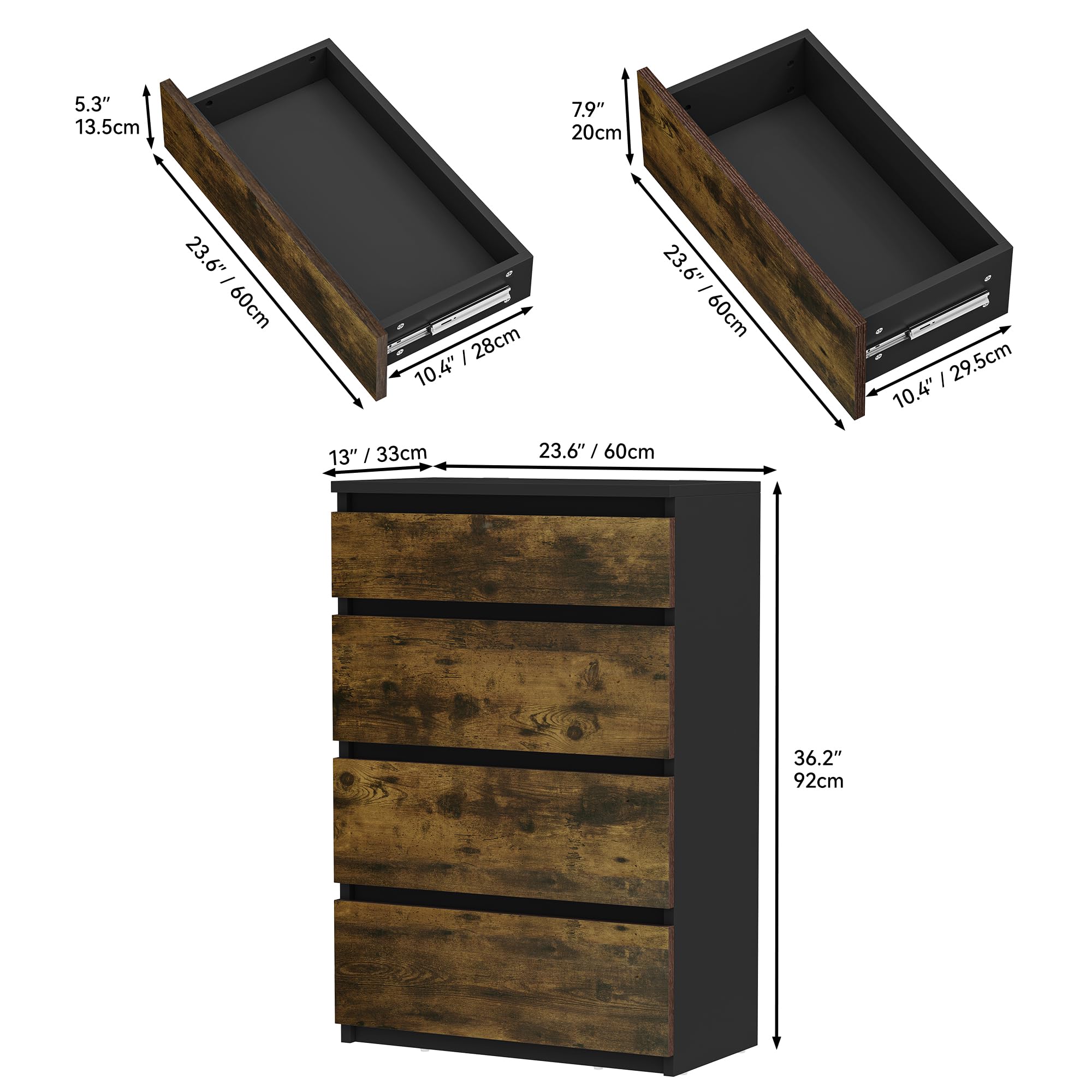 Stell dir vor, du hast endlich Ordnung in deinem Schlafzimmer! Diese YITAHOME Kommode macht's möglich. Mit ihren 4 geräumigen Schubladen verschwinden Klamotten, Accessoires und Kleinkram im Nu. Die goldenen Griffe sehen nicht nur mega edel aus, sondern lassen sich auch super smooth öffnen und schließen. Aus robusten 12-mm-Spanplaten gefertigt, hält das Teil ewig. Maße: 62 x 35 x 96 cm, jede Schublade misst 55 x 30 x 10,5 cm. Unter den Beinen passt sogar dein Roboterstaubsauger durch - praktisch, oder? Montage ist total easy, alles liegt bei. Perfekt fürs Schlafzimmer, aber auch im Flur ein Hingucker. Endlich mehr Stauraum und alles griffbereit. So macht Aufräumen Spaß!