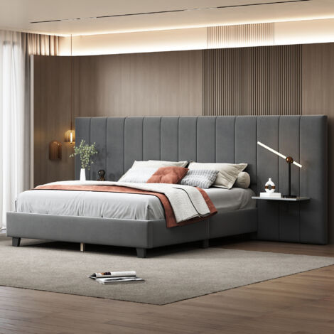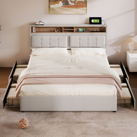• VECELO Polsterbett 160x200cm - Mit 4 Schubladen & Verstellbarem Kopfteil