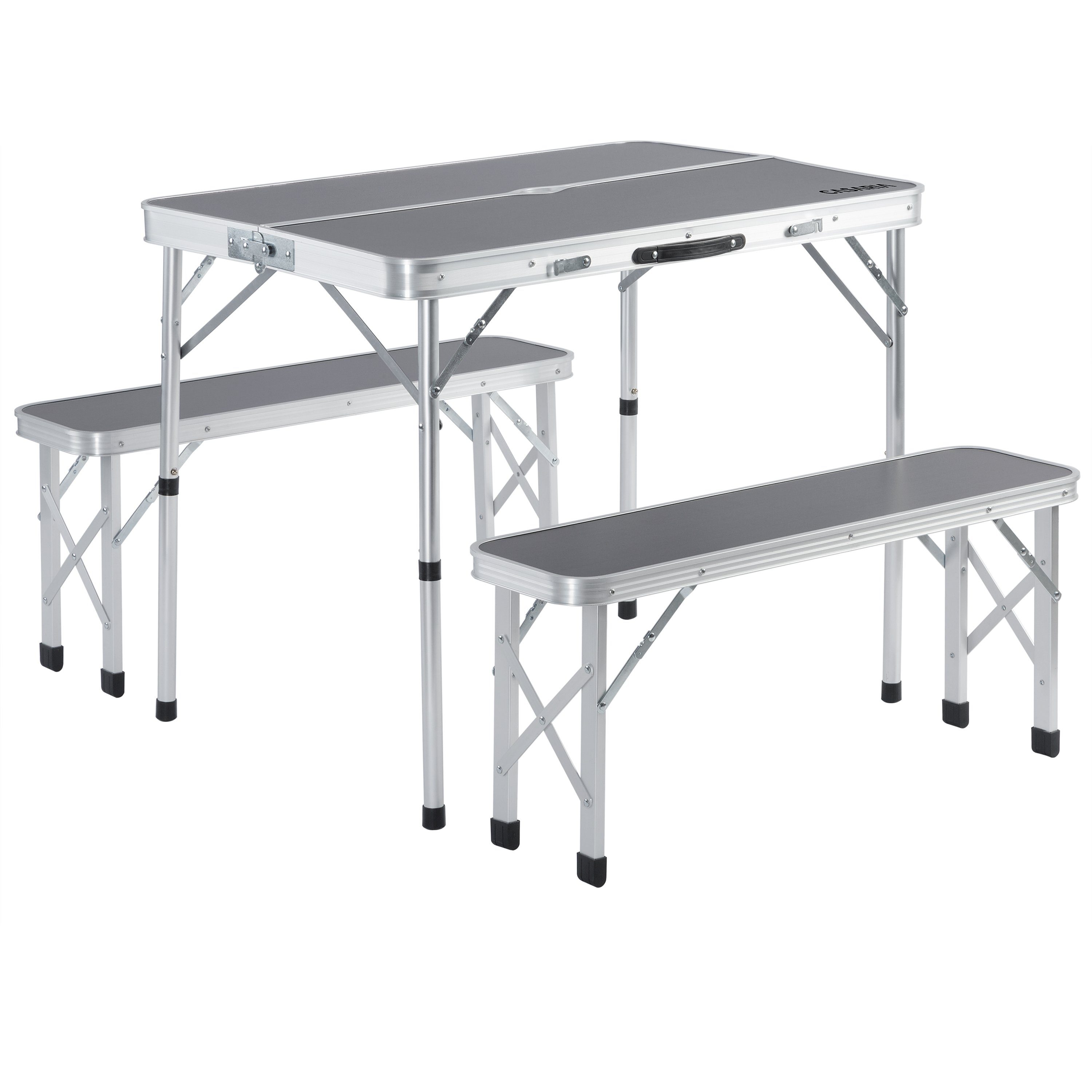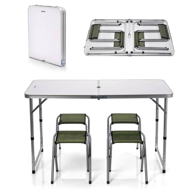 Praktisches Camping-Set für unterwegs! Enthält einen faltbaren Tisch (120x60cm) und 4 klappbare Hocker. Aus robustem Aluminium - leicht aber extrem stabil. Maximale Belastung: 30kg - sicher für Mahlzeiten und Spiele. Kompakte Faltkonstruktion - schnell auf- und abgebaut, platzsparend verstaut. Mit praktischem Tragegriff für einfachen Transport. Ideal für Camping, Picknick, Gartenfeste oder Grillpartys. Die Sicherheitsverriegelungen garantieren Stabilität auch auf unebenem Boden. Wetterfeste Oberflächen - leicht zu reinigen. Perfect für Familien, Outdoor-Fans oder Wochenendausflüge. Outtec Qualität - bekannt für innovative Outdoor-Lösungen. Hol dir dieses vielseitige Set und genieße gemütliche Stunden in der Natur - egal ob im Garten, am See oder auf dem Campingplatz!