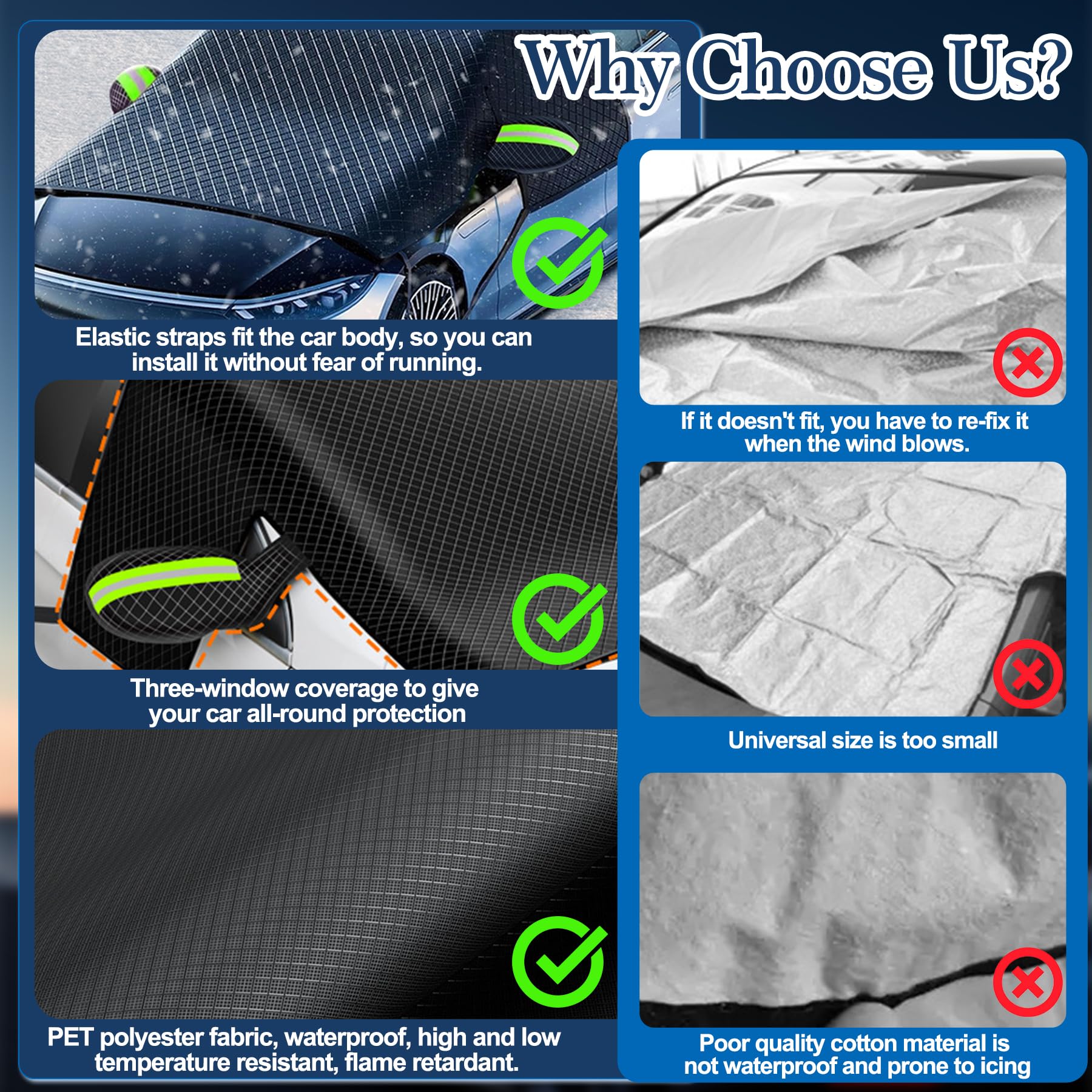 • Auto Frontscheibenabdeckung Mit 6 Magneten - Frostschutz Gegen Schnee & Eis 257x61 Cm