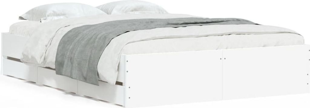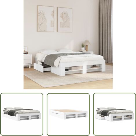 Schlafzimmer-Chaos adé! Dieses vidaXL Bettgestell bietet dir unglaublich viel Stauraum - mit ganzen 6 Schubladen und integrierten Regalen. Endlich Platz für Bettwäsche, Kleidung oder alles andere, was rumliegt. Aus massivem Kiefernholz und Spanplatte gefertigt, ist es super stabil und hält bis zu 100kg aus. Das weiße Matt-Finish sieht modern und clean aus und passt zu jedem Einrichtungsstil. Der Aufbau ist für zwei Personen machbar - alles Nötige ist im Lieferumfang enthalten. Mit Kopfteil und Leiter ist es komplett ausgestattet. Perfekt für alle, die mehr Ordnung im Schlafzimmer wollen, ohne auf Style verzichten zu müssen!