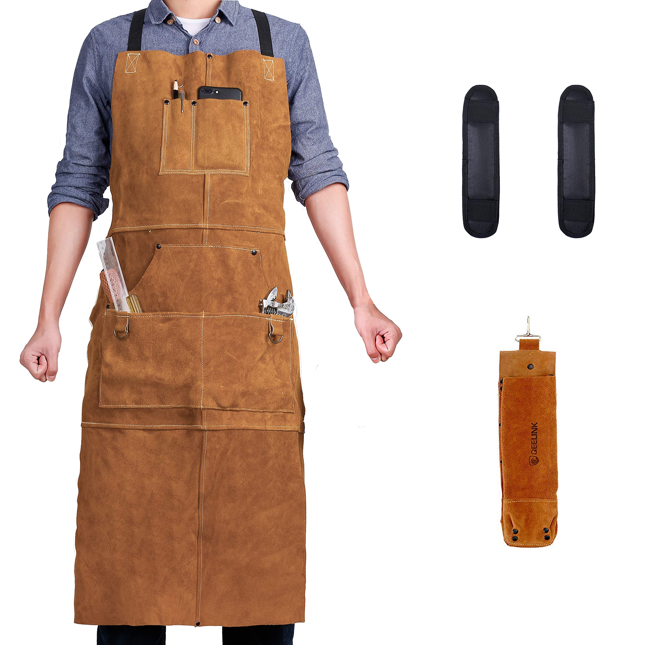 Für alle, die mit Feuer und Stahl arbeiten! Diese Schweißschürze aus 0,4mm starkem Rindsleder bietet maximalen Schutz von der Brust bis zu den Knien. Hitze- und schwer entflammbar - schützt zuverlässig vor Funken und Klingen. 6 große Taschen bieten Platz für alle Werkzeuge - kein langes Suchen mehr! Das Kreuzsystem auf dem Rücken verteilt das Gewicht optimal - bequem auch bei langer Arbeit. 61x91cm groß - ausreichend Schutz für die meisten Arbeiten. Braun, klassisch und praktisch. Perfekt für Schweißer, Schmiede, Büchsenmacher oder Hobby-Werkstätten. Robust und langlebig - hält auch rauem Einsatz stand. Endlich eine Schürze, die nicht nur schützt, sondern auch praktisch ist! Ob professionell oder hobby - Sicherheit sollte immer an erster Stelle stehen. Mit dieser Schürze bist du bestens ausgestattet!