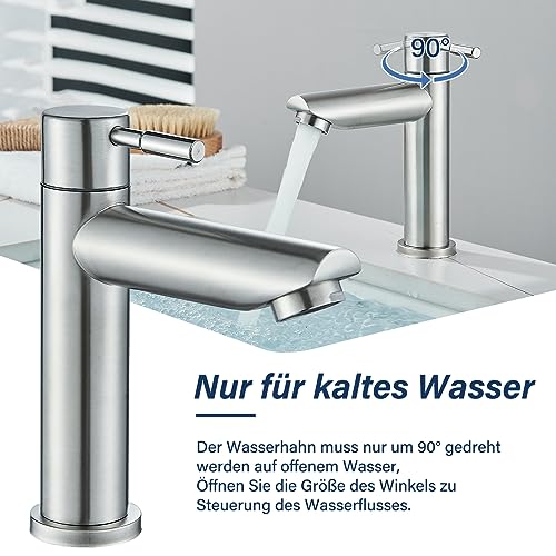 Brauchst du einen praktischen Wasserhahn fürs Gäste-WC, Bad oder Küche? Dieser einzelne Kaltwasserhahn ist perfekt! Mit 60cm Anschlussschlauch für flexible Installation. Aus hochwertiger Zinklegierung mit Keramikventilkern - das garantiert lange Haltbarkeit und perfekte Funktion. Einfache Einlochmontage mit G1/2 Gewinde (20mm), kein Bohren nötig. Das moderne Design in Silber passt zu jedem Einrichtungsstil. Wassersparend und leicht zu reinigen. Komplett mit allem Zubehör - einfach auspacken, anschließen und schon fließt das Wasser. Praktisch, zuverlässig und gut aussehend!