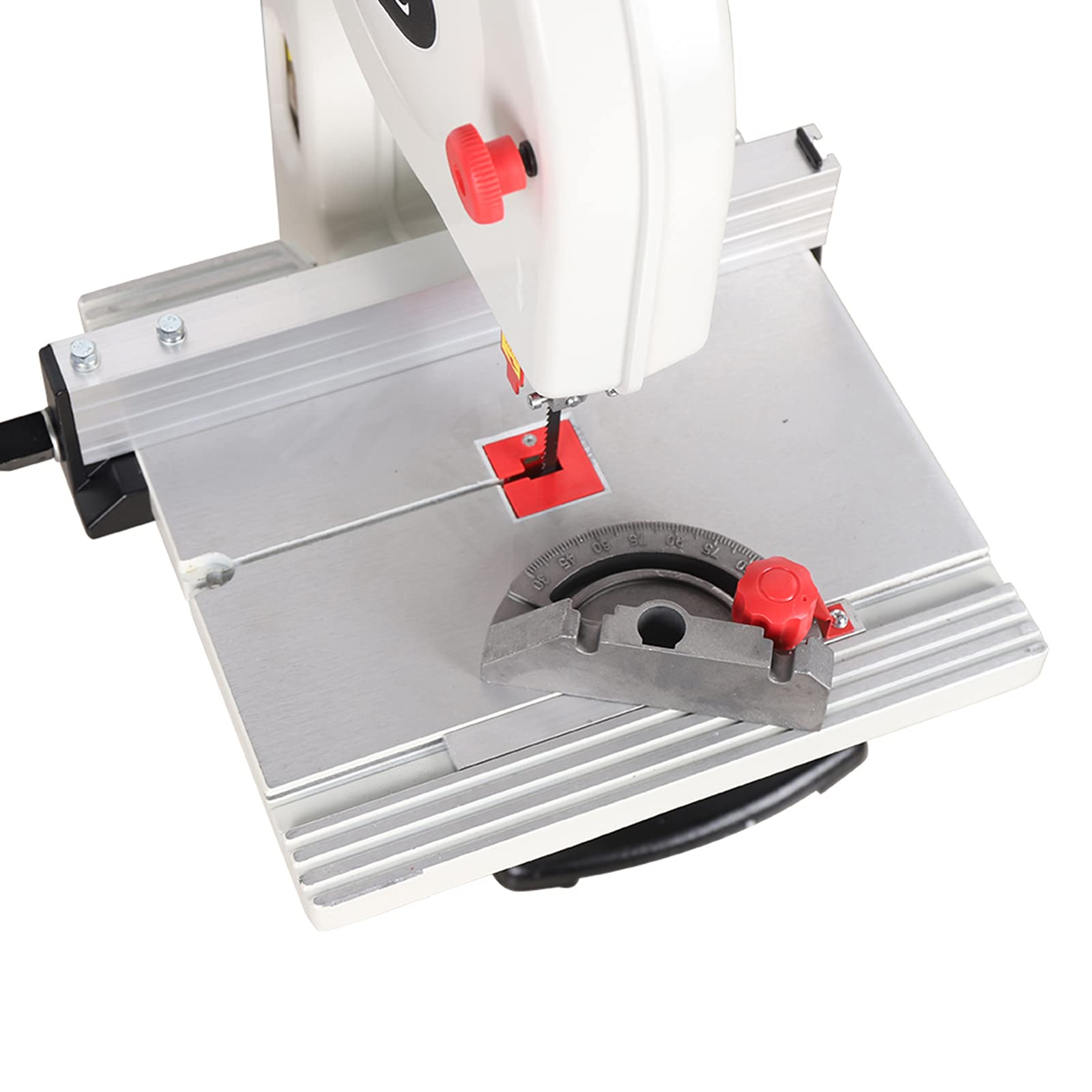 Für alle Heimwerker und Holzarbeiter - diese vielseitige Bandsäge ist dein neuer bester Freund in der Werkstatt! Mit 800 Watt Leistung und einem Reinkupfermotor meistert sie mühelos Schnitte durch Holz, Acryl und Schaumstoff. Die maximale Schnitthöhe beträgt 70 mm, die Schnittbreite bis zu 90 mm. Der Metall-Arbeitstisch ist von 0-45 Grad verstellbar, sodass du präzise Gehrungsschnitte machen kannst. Mit einer Leerlaufdrehzahl von 1750 U/min und einem 730 mm langen Sägeblatt (3,2 mm breit) erzielst du saubere und genaue Schnittergebnisse. Das kompakte Design bei nur 8,5 kg Gewicht macht die Säge auch für kleine Werkstätten perfekt. Im Lieferumfang sind bereits 2 Sägebänder enthalten - du kannst also sofort loslegen! Ob für gerade Schnitte, Kurven oder komplexe Formen - diese Bandsäge ist ein echter Allrounder, der deine Holzprojekte auf das nächste Level bringt.