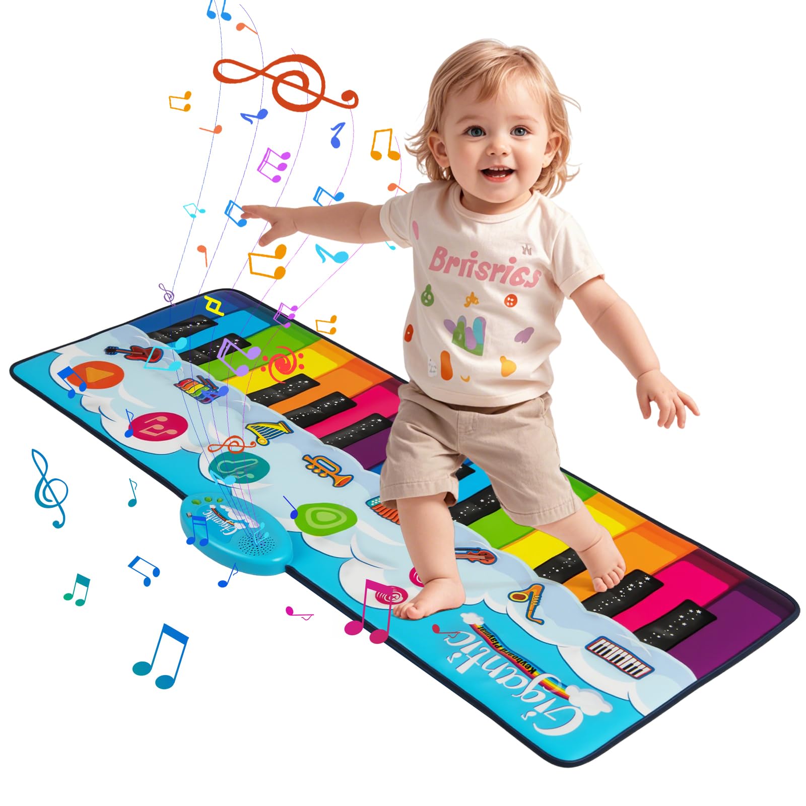 Tatataa! Hier kommt der musikalische Spaß für die Kleinen! Diese riesige Musikmatte (120x47cm) hat 24 Klaviertasten und 8 verschiedene Instrumente - von Klavier bis Gitarre ist alles dabei! Kinder können auf der Matte tanzen, hüpfen oder mit den Händen spielen. Mit Aufnahme- und Wiedergabefunktion - die eigenen Musikstücke können gespeichert werden! Rutschfeste Unterseite für sicheres Spielen. Einfach zusammenfalten und überall mitnehmen. Für Kinder ab 3 Jahren perfekt geeignet. Fördert Rhythmusgefühl und Koordination. Der Hit für Geburtstagspartys oder einfach für zu Hause! Batterien nicht enthalten - aber der Spaß ist garantiert!