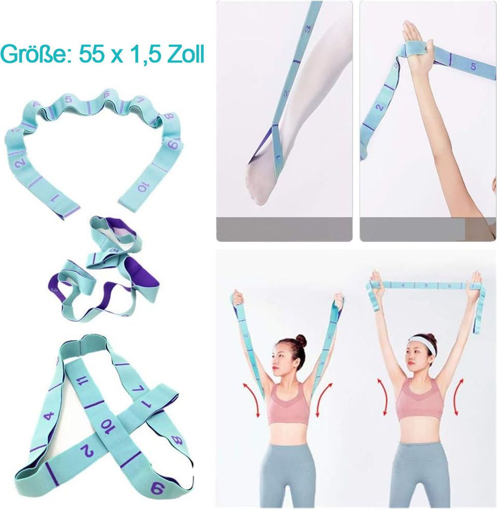 Dehn dich aus! Dieses super elastische Yoga-Stretch-Band mit 8 praktischen Schleifen ist dein idealer Partner für mehr Flexibilität. Aus Polyester und Elastan gefertigt, ist es hautfreundlich und reizt nicht. Mit 85 cm Länge und 4 cm Breite bietet es genug Spielraum für alle möglichen Übungen. Die nummerierten Schleifen helfen dir, die Länge genau einzustellen - ob für Yoga, Pilates oder Krafttraining. Perfekt für Aufwärmübungen, Muskelaufbau oder Rehabilitation. Das Band ist leicht und platzsparend - ideal für zu Hause, im Fitnessstudio oder unterwegs. In schickem Lila sieht es dazu noch super aus. Verbessere deine Dehnfähigkeit und habe Spaß beim Training!