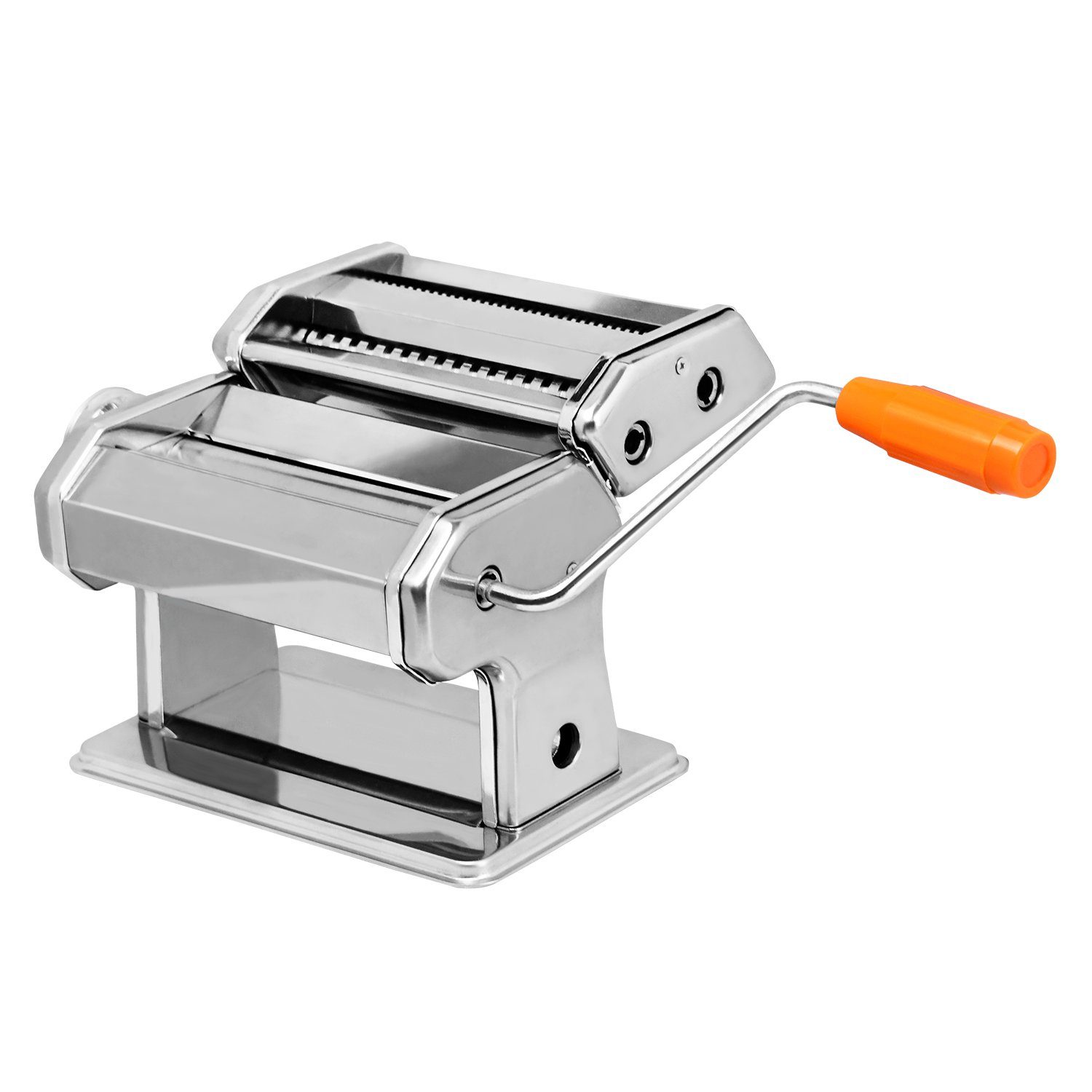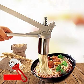 Frische Pasta selbst gemacht - sooo lecker! Mit dieser robusten Nudelpresse aus Edelstahl zauberst du im Handumdrehen deine eigenen Nudeln. Komplett mit 9 verschiedenen Formen, damit's nie langweilig wird. Ob Spaghetti, Tagliatelle oder besondere Formen - deiner Kreativität sind keine Grenzen gesetzt. Die Maschine ist aus hochwertigem Edelstahl gefertigt, der nicht rostet und super leicht zu reinigen ist. Mit ca. 17x56x58cm hat sie die perfekte Größe für die Küche. Das stabile Vierbeindesign verhindert lästiges Wackeln während der Arbeit. Die anpassbaren Druckeinstellungen lassen dich die Nudeldicke genau nach deinem Geschmack einstellen. Und das Beste: Kein Strom nötig! Einfach per Handkurbel bedienen und schon entstehen die leckersten Nudeln. Perfekt für alle, die wissen wollen, was in ihrer Pasta drinsteckt. Ob für die ganze Familie oder besondere Anlässe - selbstgemachte Nudeln schmecken einfach am besten! Einfach Teig vorbereiten, durch die Presse drehen und in kochendes Wasser geben. Schon hast du ein Restaurant-Erlebnis daheim!