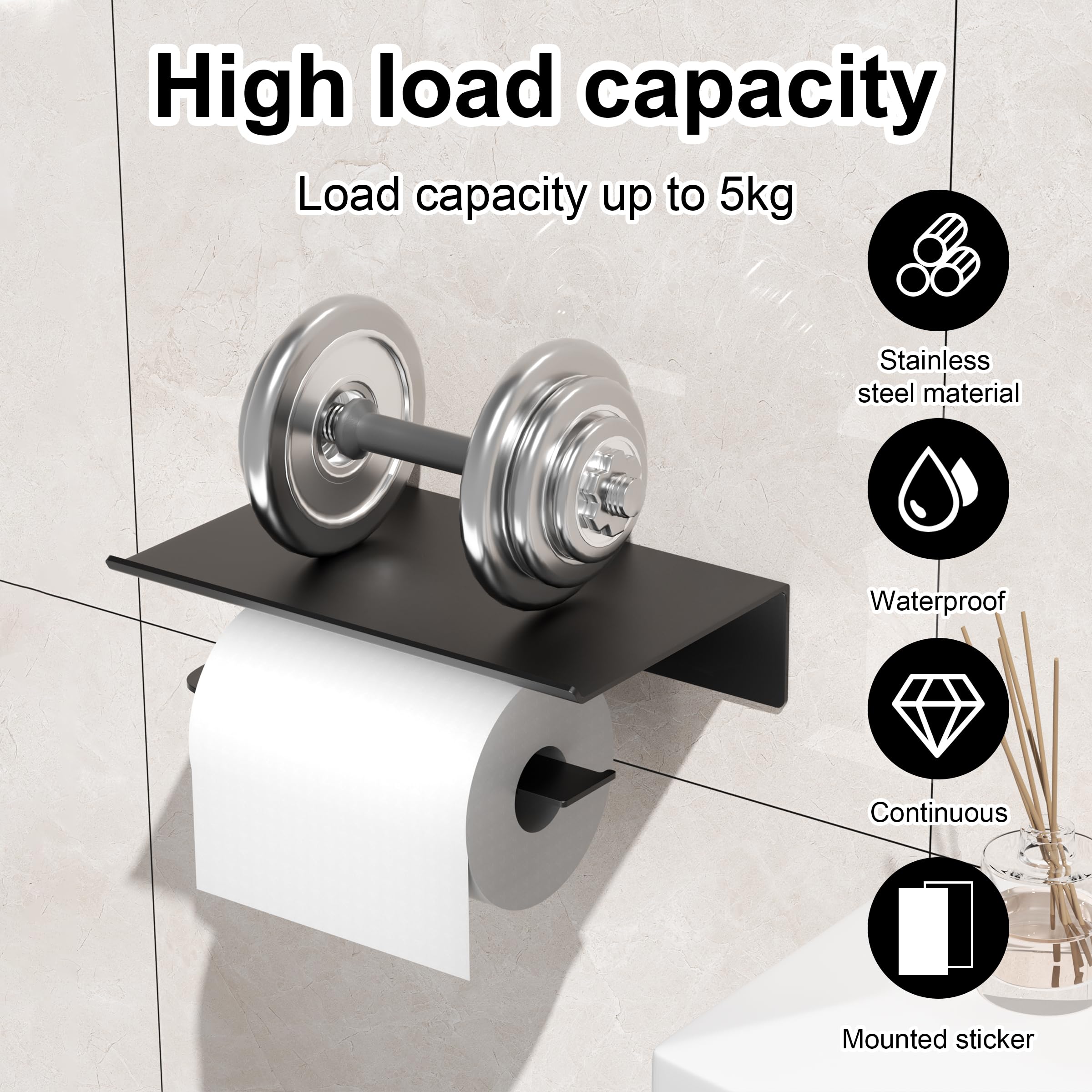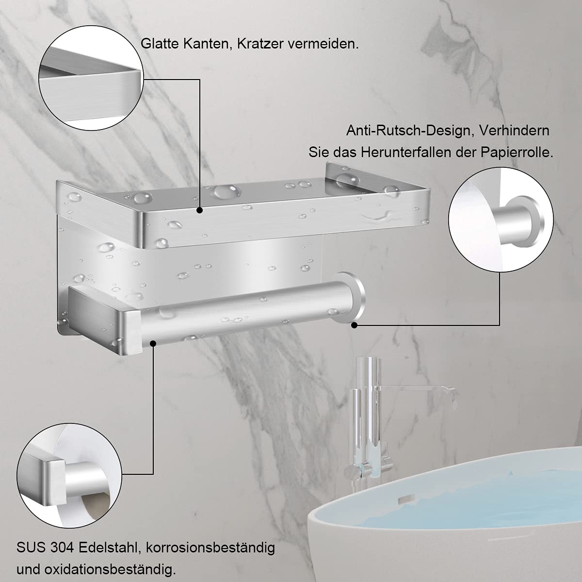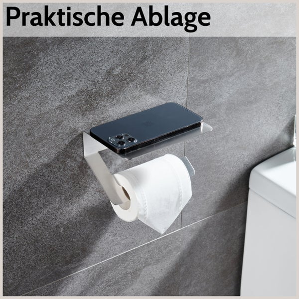 • Toilettenpapierhalter Ohne Bohren - Edelstahl Mit Ablage Für Bad & Küche