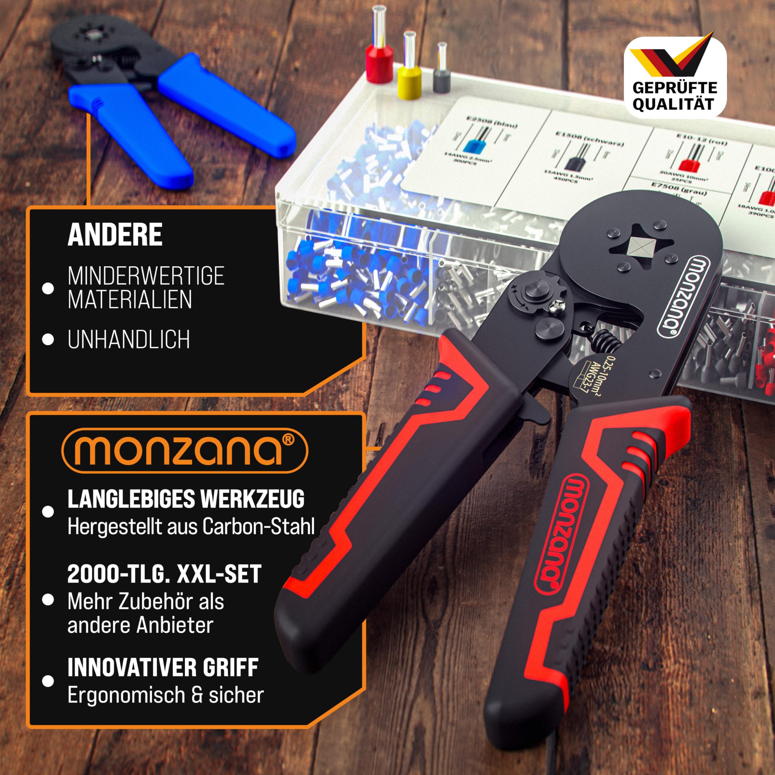 Professionelles Crimpzange-Set für alle Elektroarbeiten! Dieses Preciva Set enthält eine achtseitige Crimpzange plus 1300 Aderendhülsen (360 Doppeldraht + 940 Einzeldraht). Der Crimpbereich von 0,25-10mm² deckt fast alle Anwendungen ab. Das patentierte achtseitige Design sorgt für perfekte, runde Crimpverbindungen die extrem stabil sind. Die ergonomischen Griffe mit rutschfester Oberfläche liegen gut in der Hand. Ideal für Elektriker, Heimwerker und Hobbybastler. Ob für Hausinstallationen, Auto-Elektrik oder Reparaturen - dieses Set hat alles was du brauchst! Mit der Zufriedenheitsgarantie bist du auf der sicheren Seite. Hol dir dieses umfangreiche Set und meistere jede Elektro-Aufgabe!