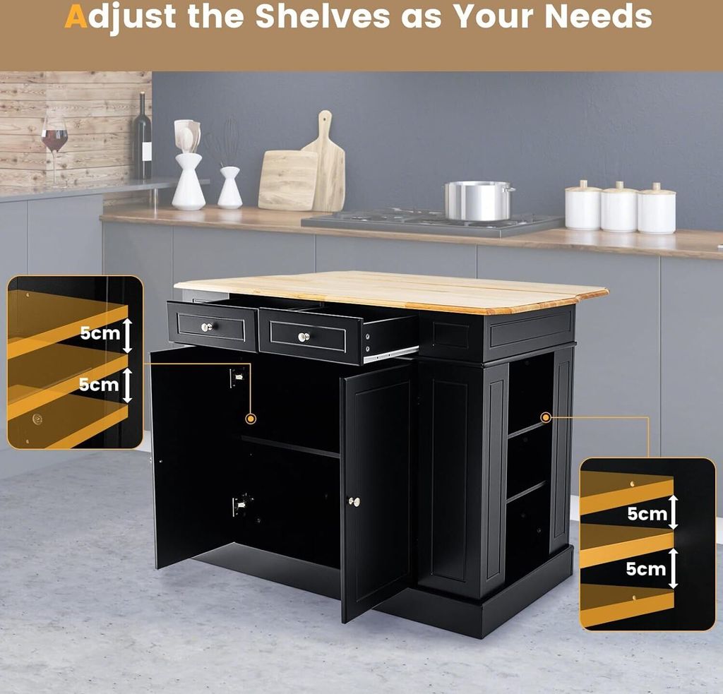 Kücheninsel Mit Ausziehbarer Platte 140cm - Servierwagen Mit Schubladen & Schiebetüren