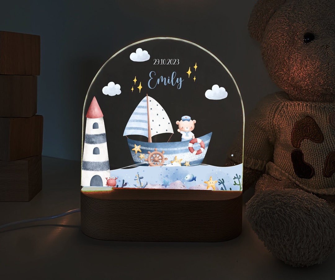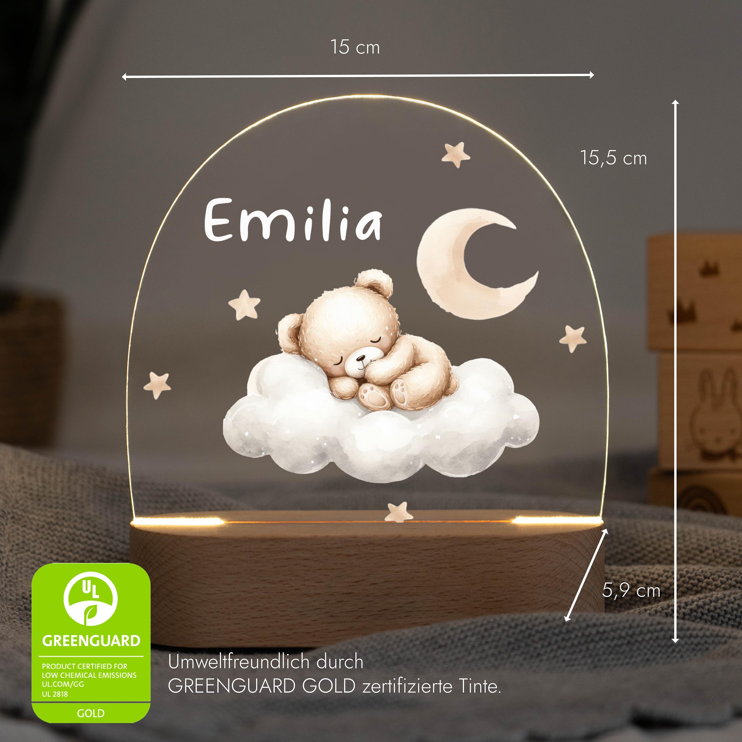 Was für eine süße Geschenkidee zur Geburt! Dieses personalisierte Nachtlicht mit niedlichem Bären-Motiv kannst du mit dem Namen des Kindes individualisieren - so wird es zu einem ganz besonderen Unikat. Das sanfte, dimmbare LED-Licht ist perfekt für Mütter beim nächtlichen Stillen oder als beruhigende Einschlafhilfe für das Baby. Einfach per Touch-Sensor die Helligkeit anpassen - ganz ohne störendes helles Licht. Im Set ist ein LED-Holzsockel mit Kabel und USB-Anschluss enthalten. Die abnehmbare Acrylplatte wird durch hochwertigen UV-Druck veredelt und sieht richtig professionell aus. Über den praktischen Schalter am Kabel lässt sich das Licht ganz easy ein- und ausschalten. Perfekt als Taufgeschenk, für Patenkinder oder einfach als liebevolle Aufmerksamkeit zur Geburt. Das niedliche Muckelfreunde-Motiv und der persönliche Name machen diese Lampe zu einem echten Erinnerungsstück, das lange Freude bereitet. Ein sinnvolles Geschenk, das Funktionalität und Design perfekt vereint und jedes Kinderzimmer verschönert!