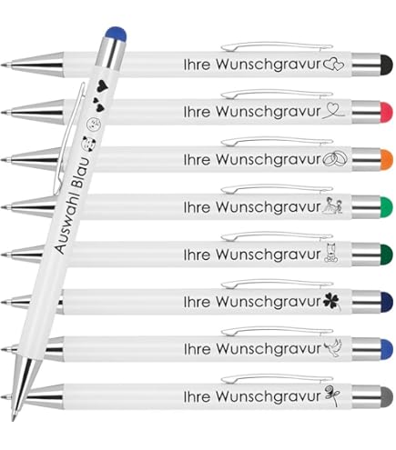 Das Beste: Du kannst jeden Stift mit deinem Logo, Namen oder sogar Emojis gravieren lassen! 😂🤣🙏😘😍 - Einfach Personalisieren auswählen und Wunschtext angeben. Made in Germany - Qualität, die ankommt!