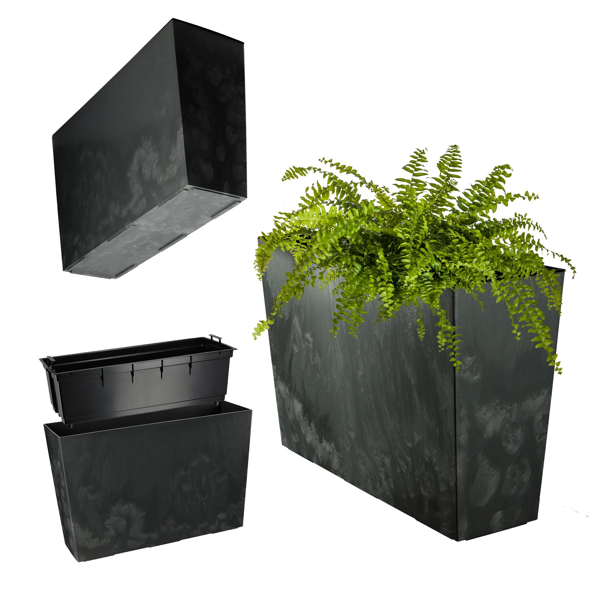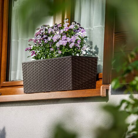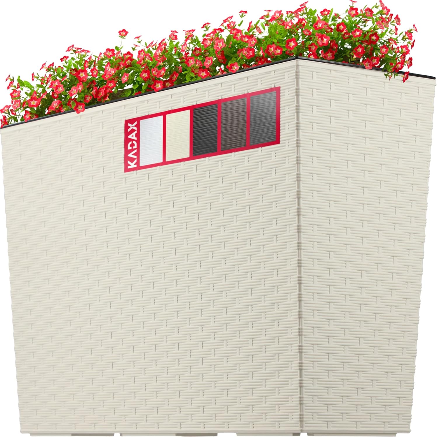 Gärtnern war noch nie so einfach! Dieser KADAX Blumenkasten mit 55,7cm Länge und 18,5cm Breite macht dein Balkon- und Terrassenleben richtig schön. Das besondere Feature: Ein integriertes Bewässerungssystem mit vier Bewässerungsbändern, die durch Öffnungen im Einsatz geführt werden. Deine Pflanzen werden automatisch mit der richtigen Menge Wasser versorgt - keine faulenden Wurzeln mehr, kein Vertrocknen in der Hitze! Der herausnehmbare Einsatz mit praktischen Griffen macht Umpflanzen und Erde nachfüllen zum Kinderspiel. Kein lästiges Tragen von schweren Kästen mehr - einfach den Einsatz rausnehmen, bearbeiten und wieder reinsetzen. Das graue Betonmuster-Design sieht modern und stylisch aus, als ob es von einem teuren Designer käme. Aus hochwertigem, UV-beständigem Kunststoff, der frostsicher ist und nicht verblasst. Ob auf dem Balkon, der Terrasse oder im Garten - deine Pflanzen haben ihr perfektes Zuhause gefunden. Mehr Grün, weniger Arbeit - was will man mehr?