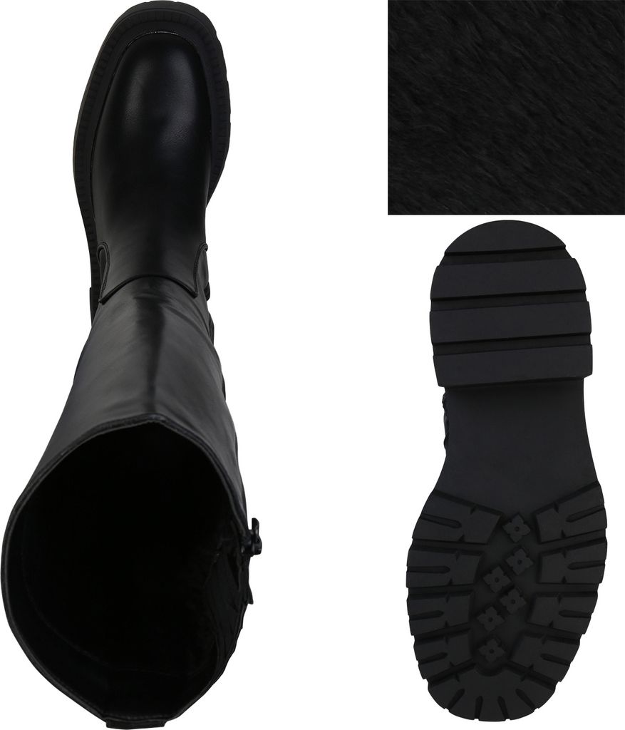 Stylische Winter-Stiefel mit Wow-Effekt! Diese VAN HILL Damenstiefel mit 10 cm Blockabsatz machen jede Frau größer und eleganter. Mit 33,5 cm Schafthöhe und spitzer Form sind sie ein echter Hingucker. Innen mit kuscheligem Kunstfell gefüttert - perfekt für kalte Herbst- und Wintertage. Aus hochwertigem Synthetik-Material in Leder-Optik, das gut aussieht und lange hält. Mit praktischem Reißverschluss für einfaches An- und Ausziehen. Für Größe 37 beträgt die Innensohle 24,5 cm. Ob zu Jeans, Rock oder Kleid - diese Stiefel passen zu vielen Outfits und sorgen für einen modischen Auftritt!