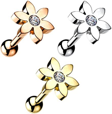 Hey, suchst du einen süßen Piercing-Stecker, der auffällt? Dieser Blumen-Stecker mit klarem Kristall ist perfekt für Lippe, Ohr oder Nase! Aus hautfreundlichem 316L Chirurgenstahl - also super verträglich und ideal für den täglichen Tragekomfort.