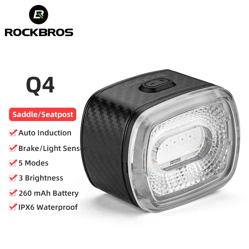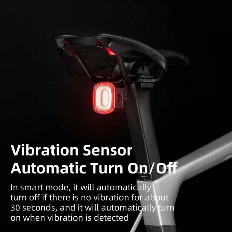 Intelligentes Rücklicht für mehr Sicherheit! Erkennt beim Bremsen automatisch und wird 3x heller - super auffällig. Mit Vibrationssensor: nach 40 Sekunden Standzeit geht es in Ruhemodus, bei Bewegung sofort wieder an. 400mAh Akku hält bis zu 15 Stunden. 5 Lichtmodi: Dauerlicht, langsames/schnelles Blinken, Atemlicht. IPX5 wasserdicht - hält jedem Wetter stand. Einfach montieren unter dem Sattel. Passt für Rennrad, Mountainbike, E-Bike. Aus Aluminium - robust und leicht. Siehst du besser, wirst du besser gesehen!