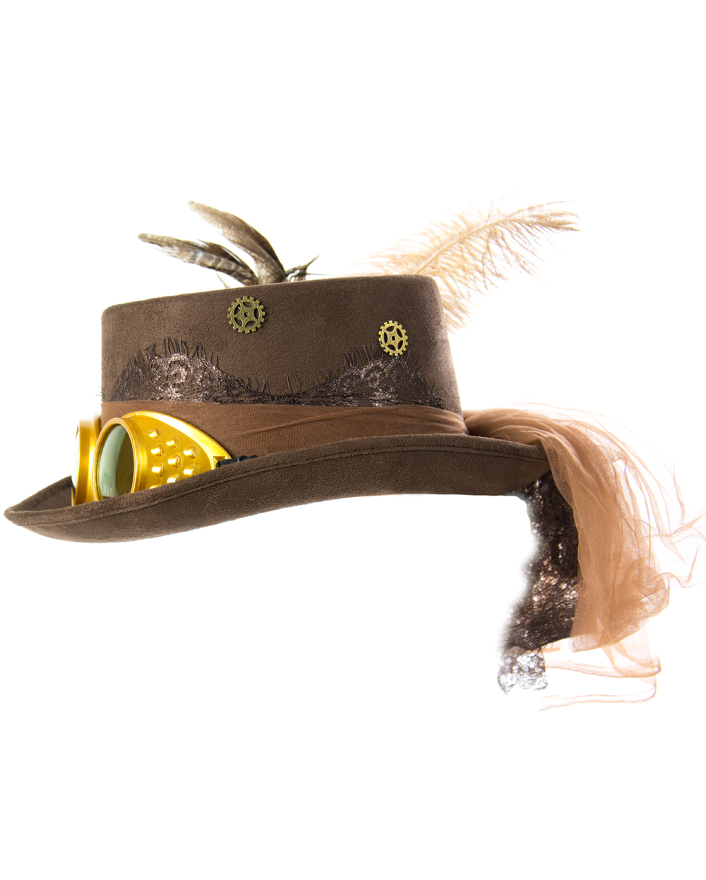 Auf zur nächsten Mottoparty mit diesem absolut coolen Steampunk Hut! Der schwarze Filzhut mit metallenen Zieraten und den charakteristischen Zahnrad-Details zieht garantiert alle Blicke auf sich. Das besondere Highlight: Die abnehmbare Schutzbrille mit verstellbaren Riemen und den stylischen Flügeln an den Seiten. Mit einem Kopfumfang von 58-59 cm passt der Hut sowohl Männern als auch Frauen und sitzt dank des praktischen Stirnbands sicher und bequem. Perfekt für Karneval, Halloween, Cosplay-Events oder jede andere Mottoparty, bei der du aus der Masse herausstechen willst. Die hochwertige Verarbeitung aus dickem Filz und Metall macht den Hut zu einem langlebigen Accessoire, das du bei vielen Gelegenheiten tragen kannst. Ob zu einem vollen Steampunk-Outfit oder als ergänzendes Detail zu deiner normalen Kleidung - dieser Hut verleiht dir sofort das gewisse Etwas. Auch als Geschenk für kreative Freunde oder Partybegeisterte ist er ideal. Einfach aufsetzen, Brille zurechtrücken und schon verwandelst du dich in einen Charakter aus einer viktorianischen Zukunftsversion. Mach dein nächstes Kostümfest zu einem unvergesslichen Erlebnis!