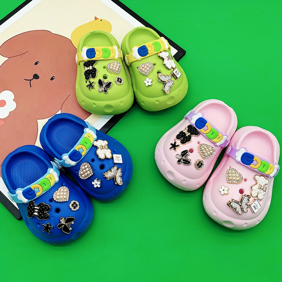 Die beliebtesten Fernsehhelden für kleine Füße! Diese offiziellen Sesamstraße Clog-Sandalen begeistern jedes Kind. Mit 6 süßen Charm-Abzeichen von Elmo, Big Bird, Cookie Monster und den anderen Stars der Sesamstraße. Der verstellbare Knöchelriemen sorgt für perfekten Halt und die Sandalen sind supereinfach an- und auszuziehen. Das wasserfeste Material macht sie ideal für Strand, Garten oder als Hausschuhe. Leicht zu reinigen und mit rutschfester Sohle für mehr Sicherheit. Das grüne Design mit Alphabet-Druck sieht total niedlich aus und die Charms sind sicher befestigt, damit sie nicht verloren gehen. Extra Löcher sind vorhanden, falls du eigene Charms hinzufügen möchtest. Perfekt für warmes Wetter, Urlaub oder den Kindergarten. Atmungsaktiv und bequem - dein Kind will sie gar nicht mehr ausziehen! Das ideale Geschenk für kleine Sesamstraße-Fans. Qualität, die Spaß macht - hier werden Kinderaugen strahlen!