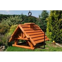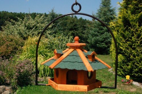 Willst du den Vögeln in deinem Garten was Gutes tun? Dieses XXL Vogelhaus ist nicht nur super praktisch, sondern sieht auch noch toll aus! Mit dem 55 cm hohen, feuerverzinkten und pulverbeschichteten Stahlbügel (rostfrei!) kannst du es einfach überall aufhängen. Das Vogelhaus selbst hat einen Dachdurchmesser von 50 cm und ist 38 cm hoch - richtig geräumig also! Die besonderen Holzlamellen am Dach geben ihm diesen charmanten Look. Das Futter füllst du einfach durch den zentralen Schornstein ein - praktisch und wettergeschützt. Schraub das Haus mit den mitgelieferten Schrauben am Bügel fest und such dir ein schönes Plätzchen im Garten, auf der Terrasse oder dem Balkon. Schon behandelt mit Holzschutzmittel, hält es lange was aus. Ein echter Hingucker, der den Vögeln das ganze Jahr über Nahrung bietet. Mach deinen Garten zur Vogel-Oase!