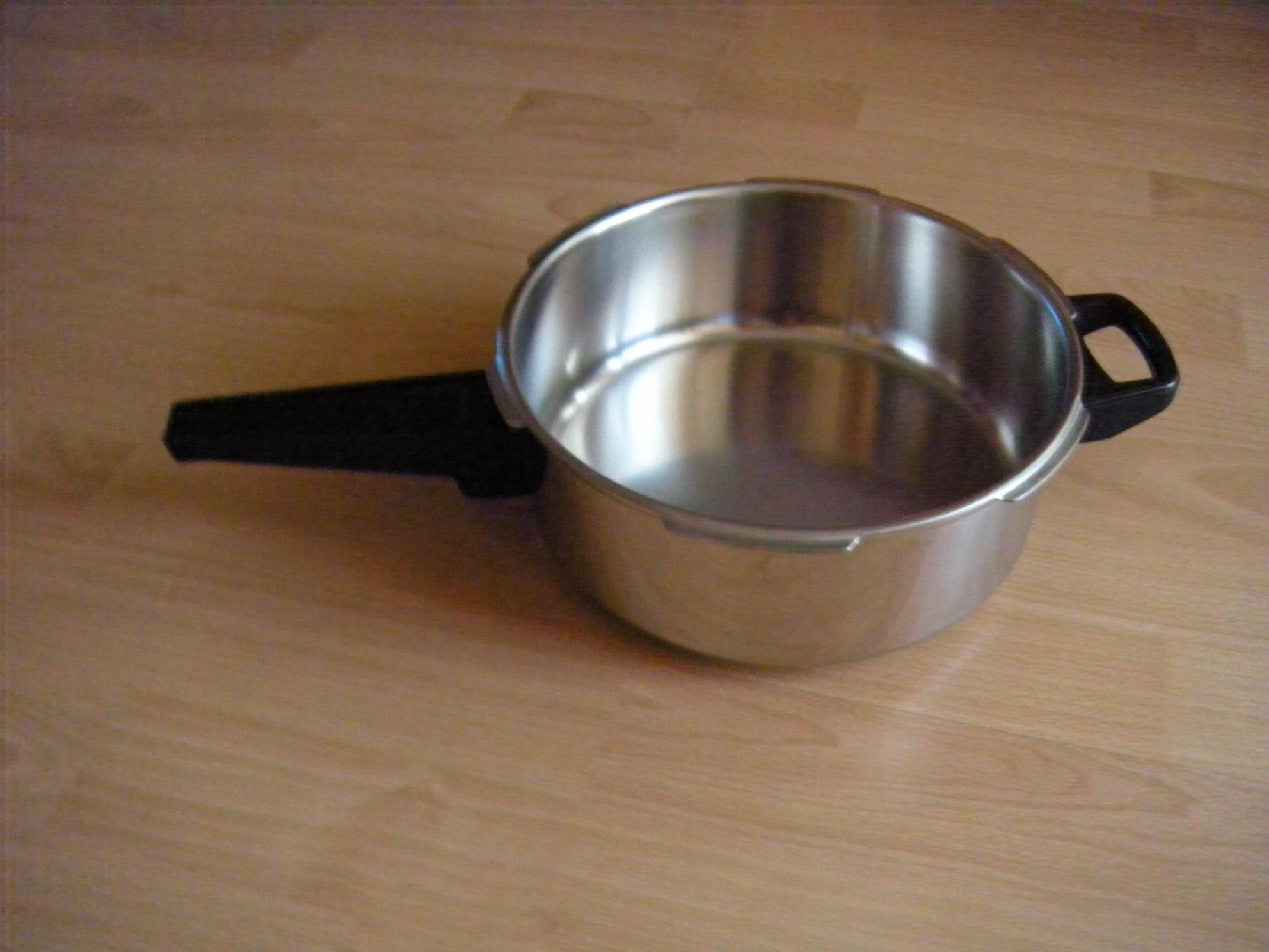 Aus robuster Aluminiumlegierung gefertigt, ist der Topf besonders langlebig und sicher. Druck- und explosionsgeschützt kannst du ganz beruhigt kochen. Mit ca. 1300g Gewicht liegt er gut in der Hand.