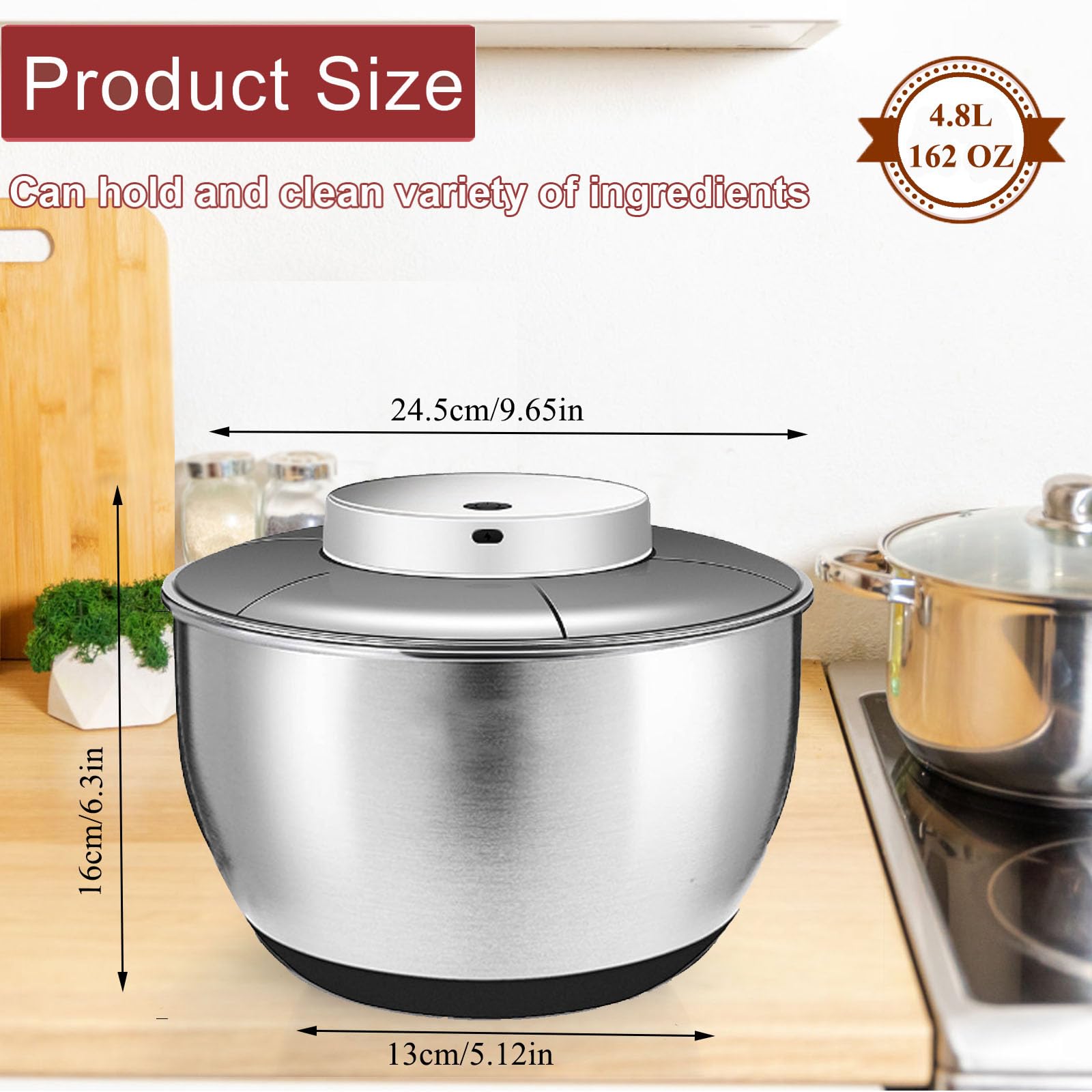Boah, diese Salatschleuder ist ja mal richtig praktisch! Mit 6 Litern Fassungsvermögen kriegst du problemlos große Salatmengen trocken. Aus lebensmittelechtem Edelstahl und PP gemacht - das hält ewig und ist super einfach zu reinigen. Der Deckel hat ein integriertes Drainagesystem, du musst ihn nicht mal abnehmen um das Wasser abzugießen. Einfach kippen und das Wasser läuft raus - genial! Die rutschfeste Unterseite sorgt für Stabilität auf der Arbeitsplatte, und die zwei Verschlussklammern verhindern, dass was daneben geht. Perfekt nicht nur für Salat, sondern auch für Nudeln, Pommes oder gewaschenes Obst. Nach dem Gebrauch einfach auseinandernehmen, abspülen - fertig! Ob für die tägliche Küche oder wenn Gäste kommen - diese Schleuder macht das Leben leichter. Endlich knackiger Salat ohne lästiges Wassertropfen! Das Teil ist so gut durchdacht, du wirst dich fragen, wie du je ohne ausgekommen bist.