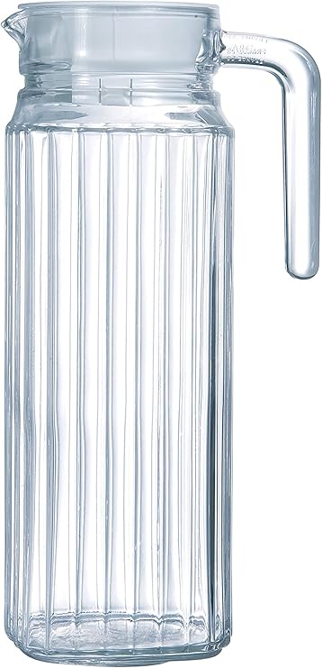 Super praktisches 2er-Set mit Glas-Wasserkrügen! Jeder Krug fasst 1 Liter und ist 23,8 cm hoch. Perfekt für Wasser, Saft, Eistee oder Cocktails. Der Deckel mit Sieb sorgt für gleichmäßiges Ausgießen. Passt perfekt in die Kühlschranktür - platzsparend und immer griffbereit. Aus stabilem Kalknatronglas, spülmaschinenfest. Achtung: Nicht für heiße Getränke geeignet! Mit ergonomischem Griff für bequemes Handling. Ideal für Zuhause, Partys oder Camping. Macht deinen Kühlschrank richtig ordentlich!