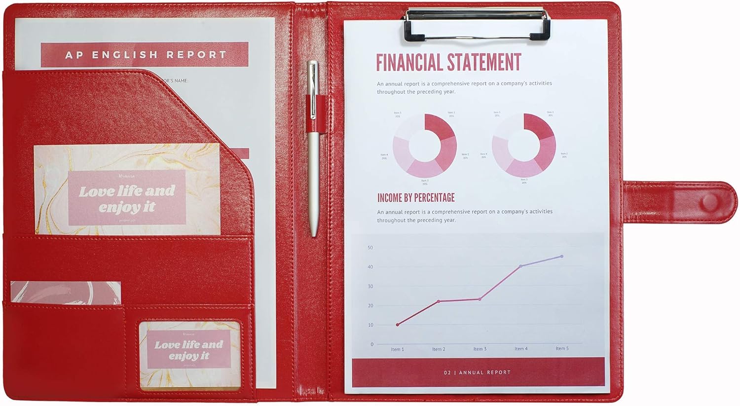 Alles griffbereit für Büro, Schule oder unterwegs! Die hocadon Klemmbrettmappe im praktischen A4-Format bietet dir nicht nur eine stabile Schreibunterlage, sondern auch jede Menge Stauraum: Mit Dokumentenfach, Kartenfächern, Stiftehalter und Metallclip hältst du deine Unterlagen immer organisiert. Aus hochwertigem PU-Leder gefertigt und mit abgerundeten Ecken. Der Deckel klappt um 180° zurück und die Mappe kann auch stehend verwendet werden. Perfekt für Meetings, Vorlesungen oder die mobile Arbeit!