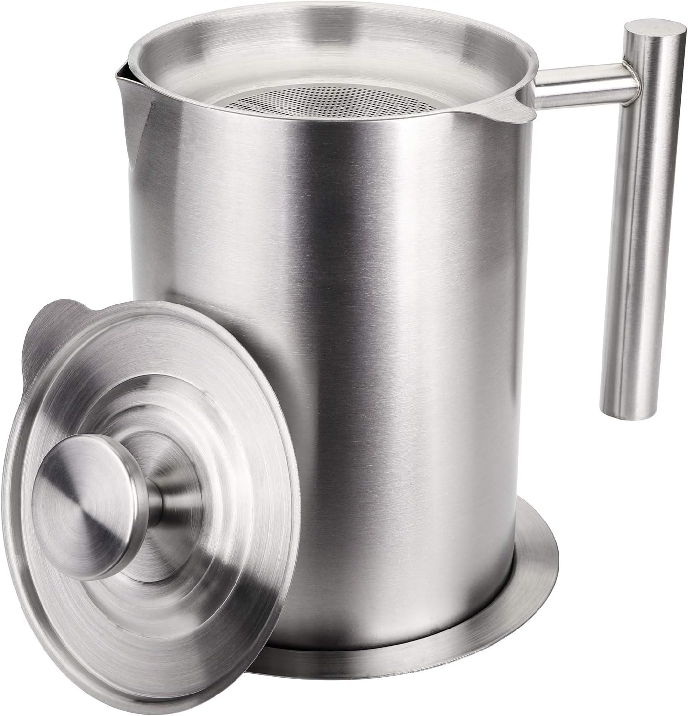 Schluss mit unordentlichem Ölfiltern! Dieser 2,8-Liter-Ölfiltertopf aus lebensmittelechtem Edelstahl 304 (spülmaschinenfest) macht die Aufbewahrung von Frittieröl, Kokosöl oder anderen Speiseölen super einfach. Inklusive abnehmbarem Feinsieb, das selbst kleine Partikel herausfiltert, und passendem Deckel gegen Staub. Die Antihaft-Innen- und Außenbeschichtung verhindert lästiges Anhaften. Mit praktischem Griff für sicheres und tropffreies Handling. Auch ideal zum Sieben von Mehl, losem Tee oder Soßen. Ein echter Küchen-Allrounder! Reinigung: Einfach in der Spülmaschine oder per Hand. Mach deine Küche sauberer und organisiert!