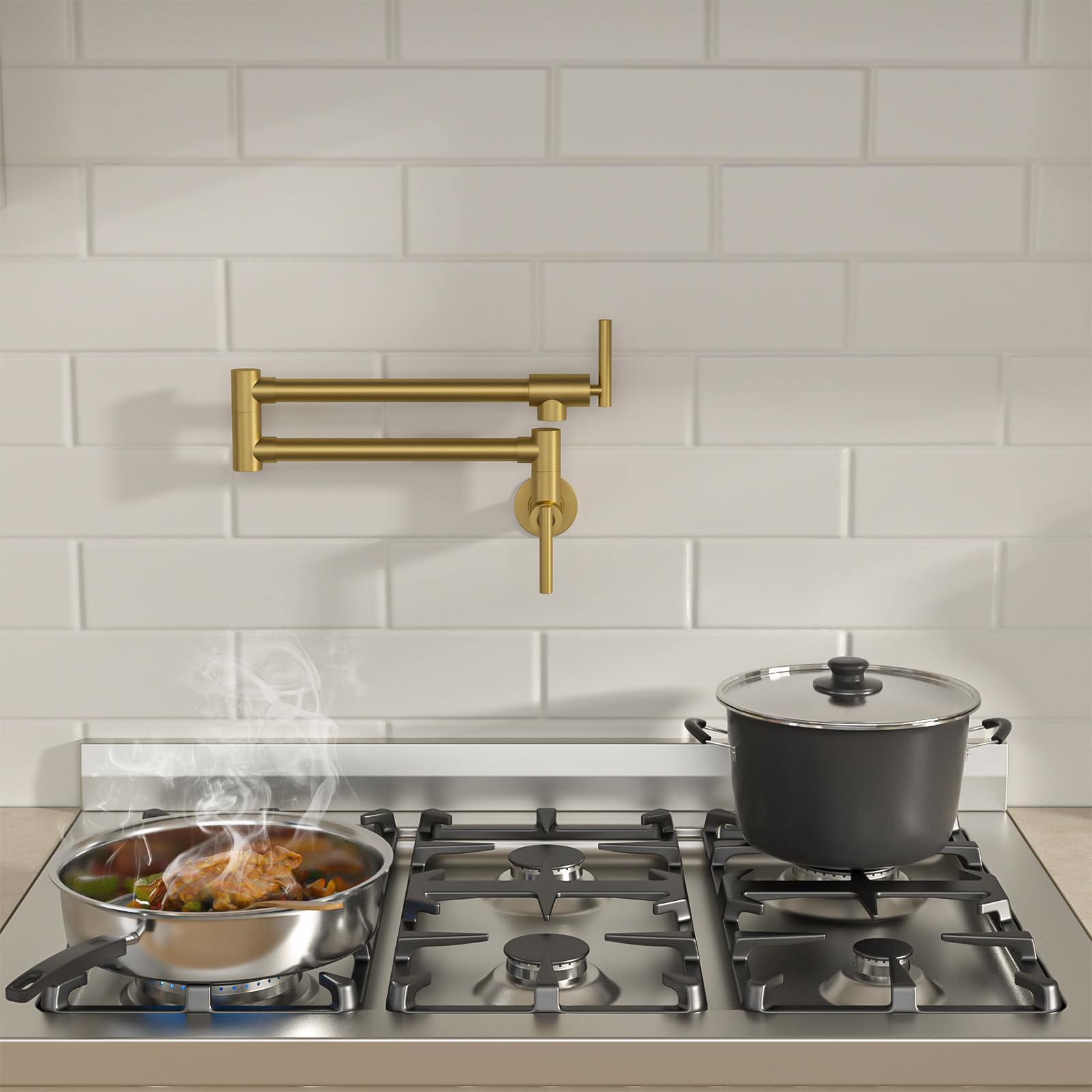 Boah, diese Armatur ist ja mal richtig clever! Der Topffüller aus Kupfer lässt sich an der Wand montieren und hat einen dehnbaren Schwenkarm mit Doppelgelenk - du kannst ihn also 360° drehen und bis zum Herd ziehen ohne mühselig mit vollen Töpfen zur Spüle laufen zu müssen. Die matt-schwarze Oberfläche ist kratzfest, korrosionsbeständig und zeigt kaum Fingerabdrücke. Mit dem G1/2 Gewinde ist die Montage einfach, und das Kupfer-Innenleben garantiert lange Haltbarkeit. Der Wasserfluss ist super stabil ohne Spritzer - und spart dabei noch Wasser! Perfekt für moderne Küchen wo praktisches Design im Vordergrund steht. Einfach beide Ventile nach Gebrauch schließen, und der Arm zieht sich automatisch zurück. Genial!