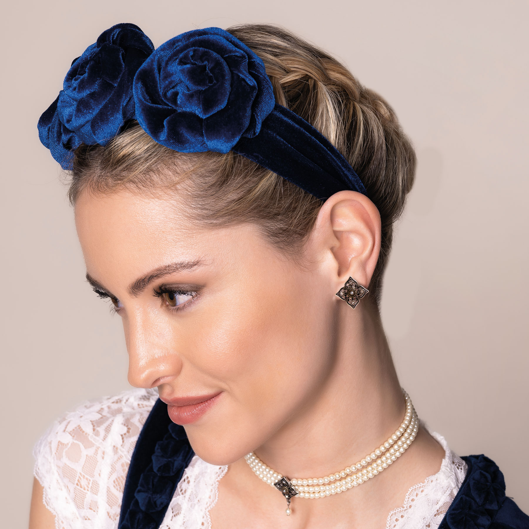 Snyvpra Trachtenhaarreif Blau Mit Edelweiß - Dirndl Haarschmuck Set