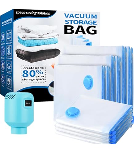 Platzproblem im Schrank? Dieses Vakuumbeutel Set ist die Lösung! 8 Beutel in 4 Größen - von klein für Kleidung bis XL für Bettdecken. Und das beste: Elektrische Pumpe ist dabei! Kein mühsames Ausrollen oder mit nem Staubsauger hantieren - einfach anschließen und in Sekunden ist die Luft raus. Bis zu 80% Platzersparnis! Doppelter Reißverschluss und dreifach abgedichtetes Ventil - nichts geht auf, nichts läuft ein. Aus reißfestem PA-PE Material - hält ewig und ist wiederverwendbar. Perfekt für Winterkleidung, Decken, Kissen oder auch für Reisen wenn der Koffer zu voll ist. Transparent - du siehst sofort was drin ist. Einfach zu bedienen: Sachen rein, Reißverschluss zu, Pumpe drauf - fertig! Ob im Schrank, unter dem Bett oder im Keller - endlich mehr Platz! Und wenn die Saison vorbei ist, einfach aufmachen, Luft rein, und alles ist wie neu. Einfach genial für jeden mit Stauraum-Problemen!