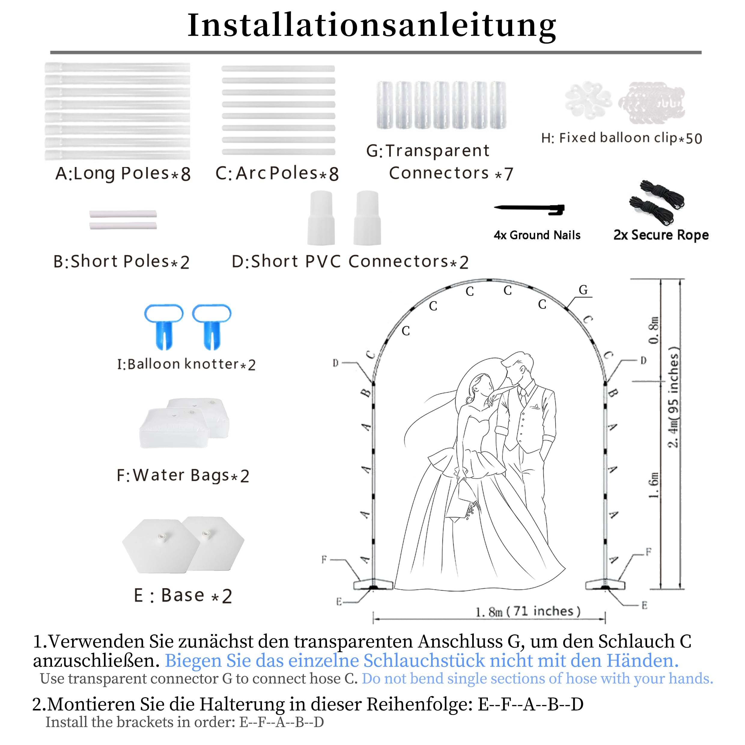 Party-Time! Dieses komplette Ballonbogen-Set macht dich zum Deko-Profi. Inklusive elektrischer Ballonpumpe - kein mühsames Aufblasen mehr! Der Bogen ist satte 6,4m lang und sowohl in der Höhe als auch Breite verstellbar. Die neu designte Basis sorgt für ultimative Stabilität, selbst im Freien. Die 15 flexiblen Kunststoffstäbe à 40cm Länge machen den Aufbau zum Kinderspiel. Leicht, transportabel und platzsparend zu verstauen. Alles dabei, was du brauchst - nur die Ballons musst du noch besorgen. Perfekt für Hochzeiten, Geburtstage, Babypartys oder jedes andere Fest. Mach deine Party unvergesslich mit professioneller Ballon-Deko!