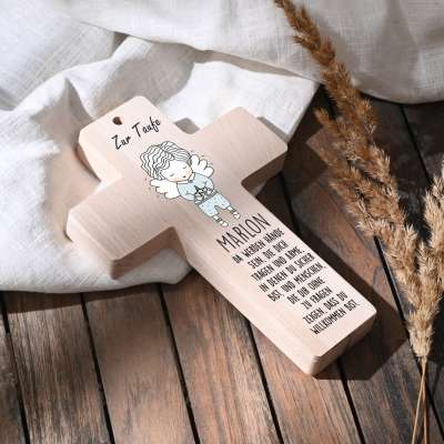 Personalisierte Kreuz Dekoration Mit Engel Flügeln | Taufgeschenk & Kommunion Dekor