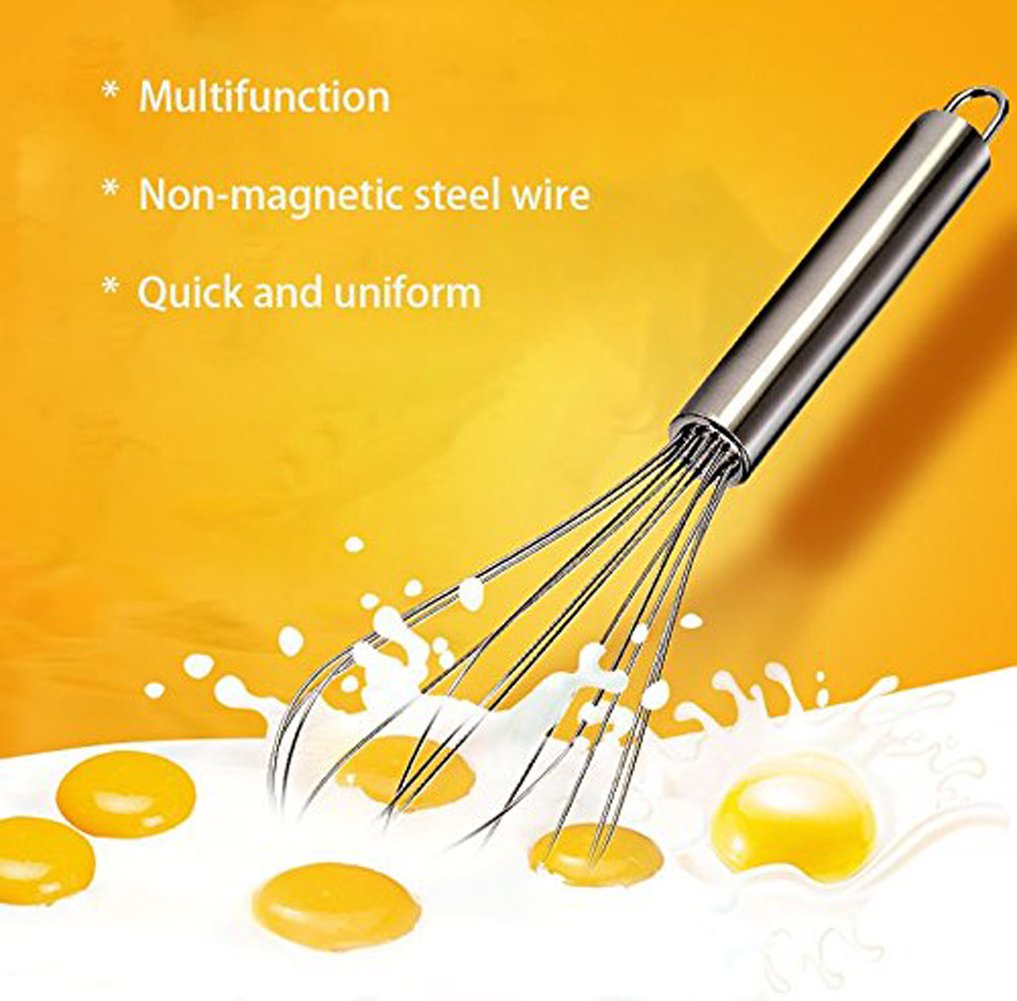 Der klassische Eierschläger - aber richtig gut! Aus robustem Edelstahl mit ergonomischem PP-Griff. 26cm lang, liegt perfekt in der Hand. Das Doppelkopf-Design schlägt Eier, Eiweiß und Teig super schnell und gründlich. Kein Strom nötig - einfach Handarbeit! Perfekt für fluffige Omeletts, Schlagsahne oder Kuchenteig. Leicht zu reinigen und super langlebig. Ob für die heimische Küche, Restaurant oder Café - dieser Schläger ist ein echter Allrounder. Kompakt und leicht - passt in jede Schublade. Hol dir dieses zeitlose Küchenwerkzeug und genieße perfekte Ergebnisse beim Backen und Kochen. Einfach, effektiv, unverwüstlich!