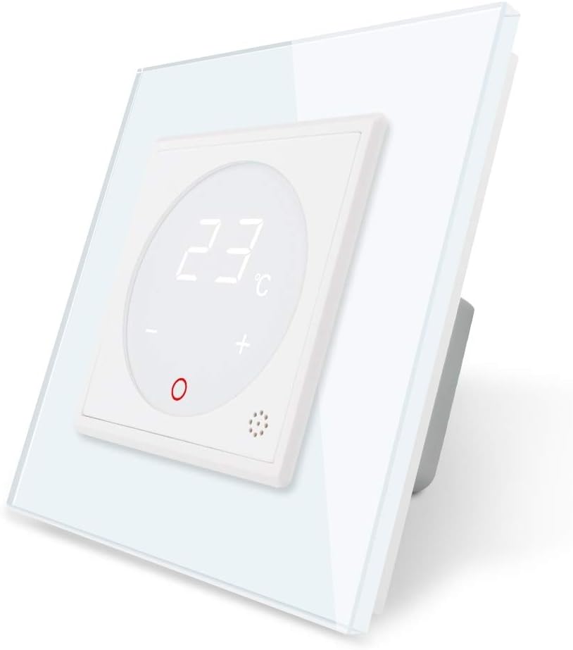 Wow, dieses LIVOLO Raumthermostat sieht nicht nur super aus - es ist auch mega praktisch! Mit Glas-Touch-Oberfläche und externem Temperaturfühler für genaue Messungen. Perfekt für deine Fußbodenheizung (wasserführend oder elektrisch). Maße: 80x80x38,5mm - passt in jede Steckdose. Verbraucht nur 0,8W und hat 30.000 Betätigungen Lebensdauer. Einfach zu bedienen über die Touch-Punkte, Display ist beleuchtet. Kann horizontal oder vertikal installiert werden. Inklusive Glasrahmen - sieht einfach edel aus! Für 100-240V und 16A Schaltleistung. Ob im Wohnzimmer, Bad oder Flur - mit diesem Thermostat hast du die Temperatur immer im Griff. Einfach modern und smart!