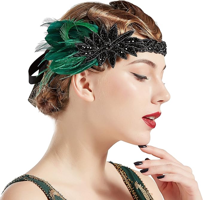 Boah, für den nächsten Gatsby-Abend oder die Kostümparty ist dieses Flapper Stirnband einfach perfekt! Das Teil sieht aus wie direkt aus den wilden 20ern! Es besteht aus echten Federn, funkelnden Kristall-Strasssteinen und hochwertigen Kunstperlen - richtig edel verarbeitet! Die Perlenfransen bewegen sich bei jedem Schritt und die Strasssteine glitzern mega! Das Stirnband hat eine Einheitsgröße mit elastischem Design - passt also bei den meisten Kopfumfängen! Ob für Cocktailpartys, Bälle, Weihnachtsfeiern, Art-Deco-Partys oder Hochzeiten - mit diesem Kopfschmuck fällst du definitiv auf! Es ist auch ein super Geschenk für Mutter, Freundin oder Schwester - einfach für jede Frau, die sich mal wie in den Goldenen Zwanzigern fühlen will! Die Verarbeitung ist echt hochwertig, nichts bröckelt ab oder so! Du kannst es zu verschiedenen Outfits kombinieren - ob zum Abendkleid oder zum Gatsby-Kostüm! Einfach aufsetzen und schon bist du die Königin der Party! Kleiner Hinweis: Die Farbe kann auf dem Bild etwas anders aussehen als in echt - aber das ist bei so glitzernden Teilen ja normal! Wenn du auf Vintage-Stand stehst, wirst du dieses Stirnband lieben!