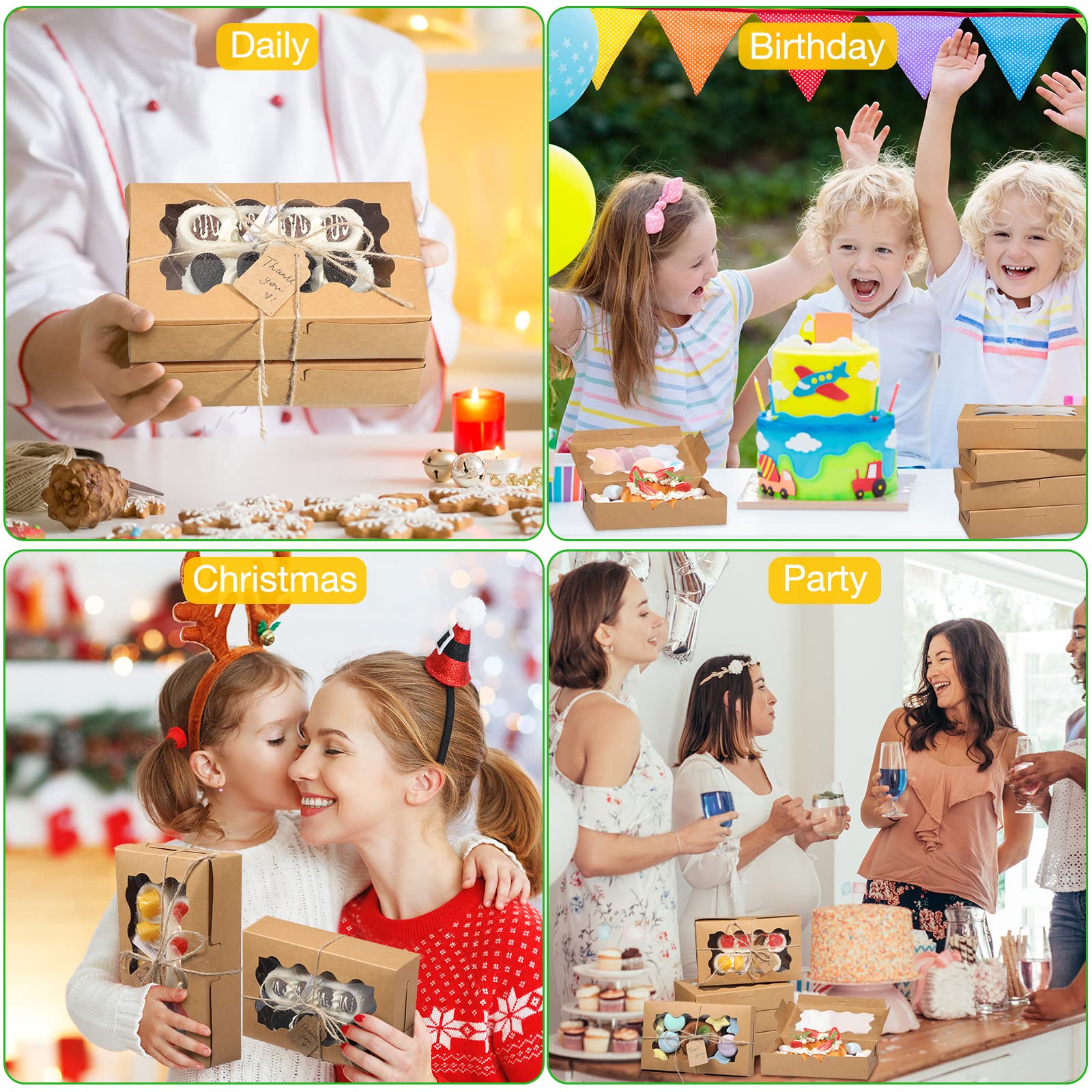 Perfekt verpackt für jede Feier! Diese 60 weißen Keksboxen aus Kraftpapier machen deine Selbstgebackenen zu etwas Besonderem. Mit praktischem Sichtfenster - so sehen deine Gäste die leckeren Kekse, Macarons oder Pralinen sofort. Maße: 17,8x10,9x3,8 cm, ideal für die meisten Backwaren. Einfach entlang der vorgefalzten Linien zusammenstecken - kein Kleben nötig! Im Set enthalten: 60 Boxen, 60 Etiketten (5x3 cm) und 60 Rollen Bindfaden (je 10 m). Super für Geburtstage, Hochzeiten, Weihnachten oder als Gastgeschenk. Zeig deine Backkünste und mach jedes Dessert zum Hingucker. Einfach, ökologisch und total effektvoll!