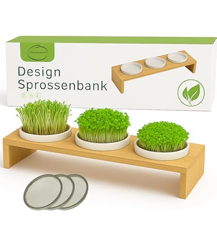 Hey, wenn du frisches Grünzeug selbst ziehen willst, ist dieses 6er-Set genau das Richtige! Perfekt für Sprossen, Microgreens oder Kresse - egal ob Brokkoli, Alfalfa, Klee oder Radieschen. Die Schalen sind aus lebensmittelechtem PP-Material, absolut sicher und ungiftig. Mit 1,2mm kleinen Löchern im Innentablett - ideal für Samen unter 3mm Größe. Die verstellbaren Lüftungsöffnungen sorgen für die perfekte Luftfeuchtigkeit. Einfach Samen einweichen, abspülen und ins Tablett geben. Etwa 400ml Wasser in die untere Schale füllen - aber Achtung: Die Samen sollten nicht komplett im Wasser schwimmen! Die unteren Schalen sind spülmaschinenfest (nur die Kuppeln bitte von Hand reinigen). Super für Anfänger - einfach auf die Fensterbank stellen und nach wenigen Tagen erntefrisches Grün genießen! Mach deine eigenen Superfoods ganz einfach zu Hause!