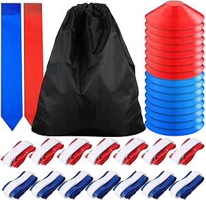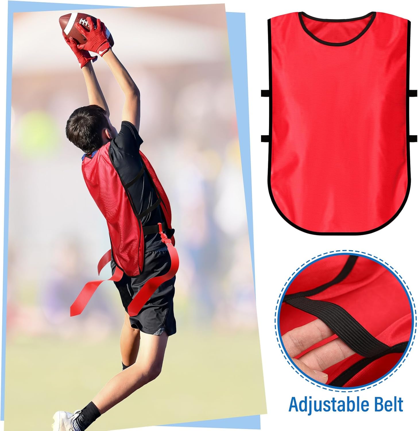 Volle Action mit diesem kompletten Flag Football Set von Kopinma! Perfekt für Sportunterricht, Vereinstraining oder einfach für spannende Spiele mit Freunden und Familie. Im Set enthalten sind 14 verstellbare Gürtel - 7 in Rot und 7 in Blau - plus 28 bunte Flaggen. So kannst du direkt zwei komplette Mannschaften ausstatten! Die Gürtel sind durch verstellbare Riemen für Kinder und Erwachsene gleichermaßen geeignet. Besonders praktisch: Der elastische Ring am Gürtel hält überstehende Riemen sicher fest, damit niemand während des Spiels hängen bleibt. Die Flaggen und Gürtel sind aus hochwertigem PVC und robustem Bandmaterial gefertigt - sie halten auch intensivsten Spielen stand. Ob im Park, am Strand oder im Garten - mit diesem Set bringst du Action und Spaß in jede Gruppenaktivität. Perfekt für Teambuilding, Schulveranstaltungen oder einfach für einen aktiven Tag mit Freunden!