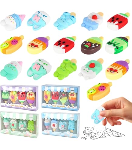 Wow, diese Radiergummis machen sogar Hausaufgaben spaßig! Das 8-teilige Set kommt mit super süßen Eis- und Fruchtmotiven, die nicht nur niedlich aussehen, sondern auch noch lecker duften. Aus hochwertigem PVC-Material sind sie ungiftig, weich und krümeln kaum - perfekt für kleine Künstler! Jeder Radiergummi ist etwa 5x2,5x1 cm groß und liegt gut in Kinderhänden. Die rutschfeste Oberfläche ermöglicht präzises Löschen ohne Papier zu beschädigen. Ob für die Schule, zum Zeichnen oder als süße Deko im Federmäppchen - diese Radierer sind echte Alleskönner! Die frischen Düfte von Erdbeere, Zitrone und anderen Früchten steigern die Konzentration und machen Lust aufs Lernen. Ideal als Geschenk zur Einschulung, zu Ostern oder einfach als kleine Überraschung für zwischendurch. Dein Kind wird diese bunten Radiergummis lieben!