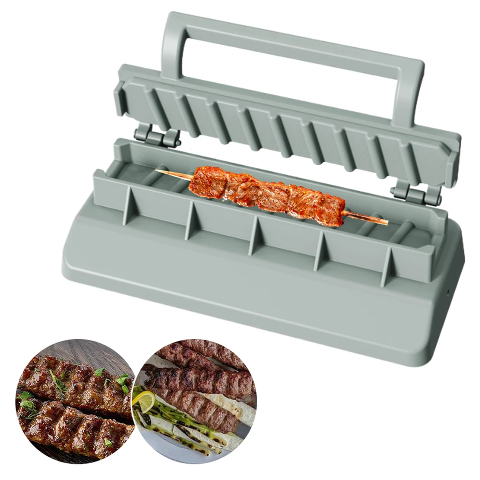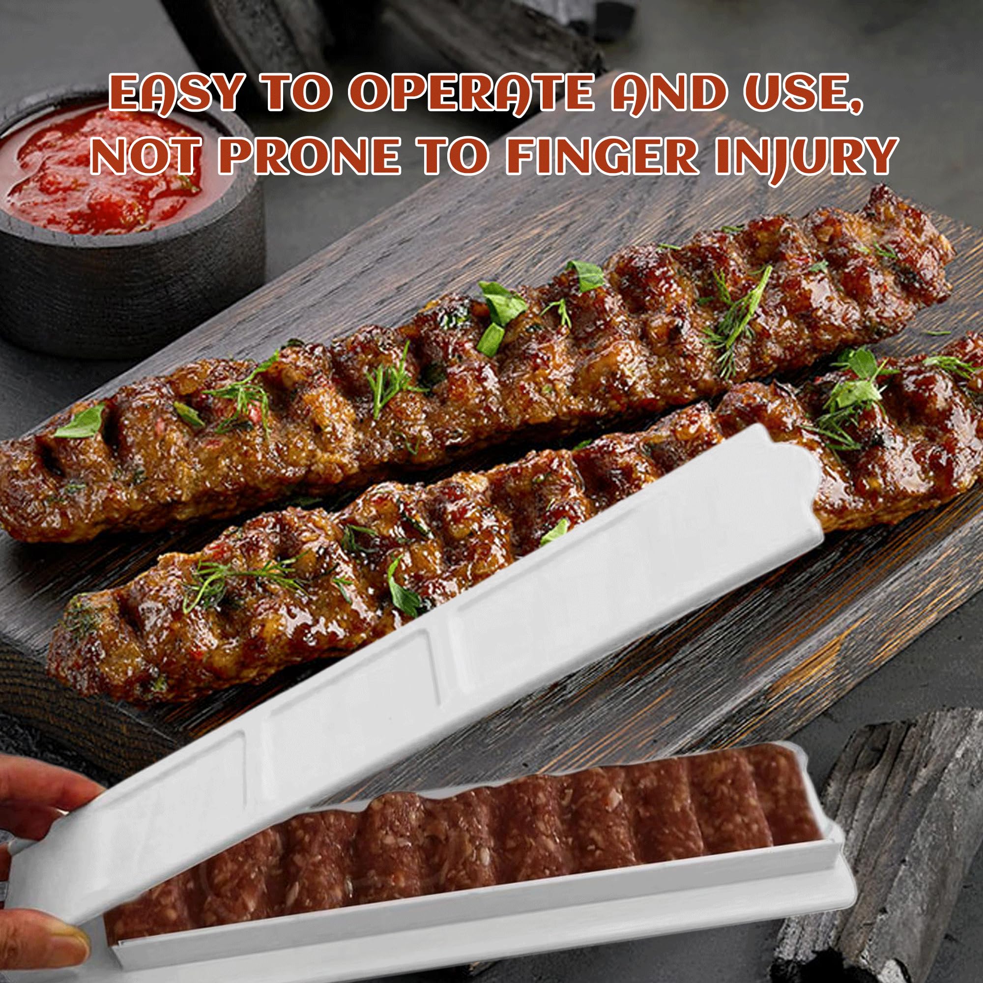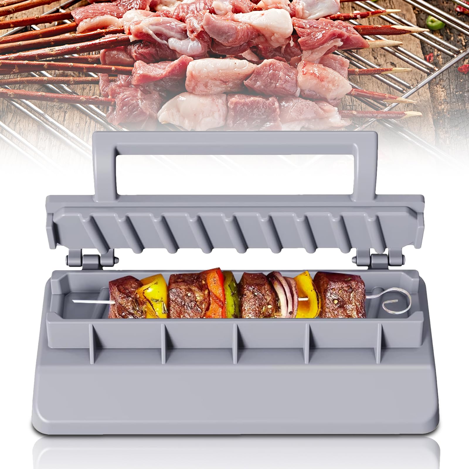Perfekte Grillspieße ganz easy! Dieser Schaschlik-Maker macht's möglich. Einfach einen Gefrierbeutel in die Form legen, Hackfleisch oder Gemüse reinpressen, auspacken - und schon hast du gleichmäßige Spieße. Aus lebensmittelechtem Kunststoff (LFGB-zertifiziert), also völlig unbedenklich. Die Folie nimmt das ganze Fett auf - kaum Sauerei! Auch super für Camping: Frisch gefangenen Fisch auf Stöcke pressen und überm Lagerfeuer grillen. Einfach mit Wasser abspülen oder in der Spülmaschine reinigen. Ein Werkzeug, das Einweg-Spieße überflüssig macht - umweltfreundlich und praktisch. Damit werden deine Grillpartys zum echten Hit!