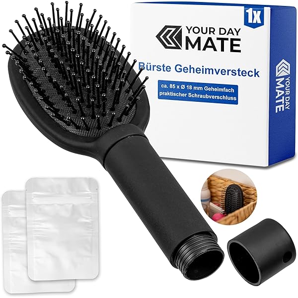 Die genialste Haarbürste der Welt - mit verstecktem Safe! Sie sieht aus wie eine ganz normale Bürste, verbirgt aber ein cleveres Geheimfach für Bargeld, Kreditkarten oder Schmuck. Aus robustem Harz gefertigt, ist sie langlebig und unauffällig. Die weichen, biegsamen Borsten kämmen schonend selbst empfindliches Haar und massieren die Kopfhaut angenehm. Perfekt für Reisen, Hotelaufenthalte oder als Notfall-Versteck zuhause. Mit 25x12x8 cm kompakt genug für jede Handtasche oder Reisegepäck. Das Geheimfach ist so diskret integriert, dass niemand darauf kommt - maximale Sicherheit für deine Wertsachen. Besonders praktisch in unsicheren Umgebungen oder beim Stadtbummel. Der rutschfeste Griff liegt angenehm in der Hand. Ein Must-Have für alle, die diskret und clever unterwegs sein wollen. Auch super als Geschenk für weltoffene Menschen - praktisch und unauffällig. Endlich musst du dir keine Sorgen mehr machen, wo du deine wichtigsten Sachen verwahrst. Einfach genial!