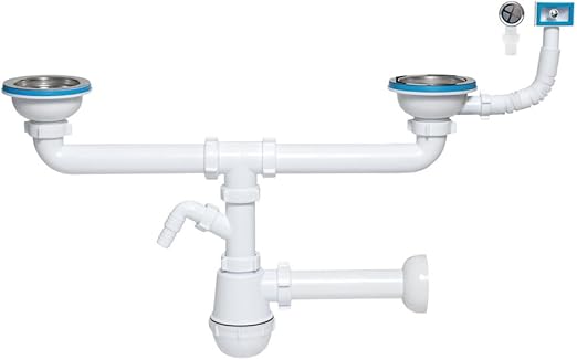 Profiqualität für deine Küche! Dieser Talea Doppel-Siphon mit 114mm Durchmesser ist die perfekte Lösung für moderne Spülbecken. Mit praktischem Anschluss für deine Geschirrspülmaschine - alles in einem Set! Passt für Spülbecken mit einer Öffnung von 84-90mm. Aus hochwertigen Materialien: Edelstahl, PP und PVC für Langlebigkeit und Korrosionsbeständigkeit. Das Set enthält alles was du brauchst: Rohrset, 2 Abflusssiebe, Überlauf und praktischen Druckknopf zum Öffnen/Schließen der Siebe. Der steel ball bowl-type overflow drain sorgt für zuverlässigen Überlaufschutz. Geruchsverschluss durch die Flasche Konstruktion verhindert unangenehme Gerüche aus dem Abfluss. Einfach zu installieren, platzsparendes Design. In Chrom-Optik die zu jeder Küche passt. Mach deine Kücheninstallation professionell und zuverlässig mit diesem qualitativ hochwertigen Siphon von Talea. Perfekt für die Installation in neuen Küchen oder als Ersatz für alte, undichte Siphons. Modell: Z7052C006