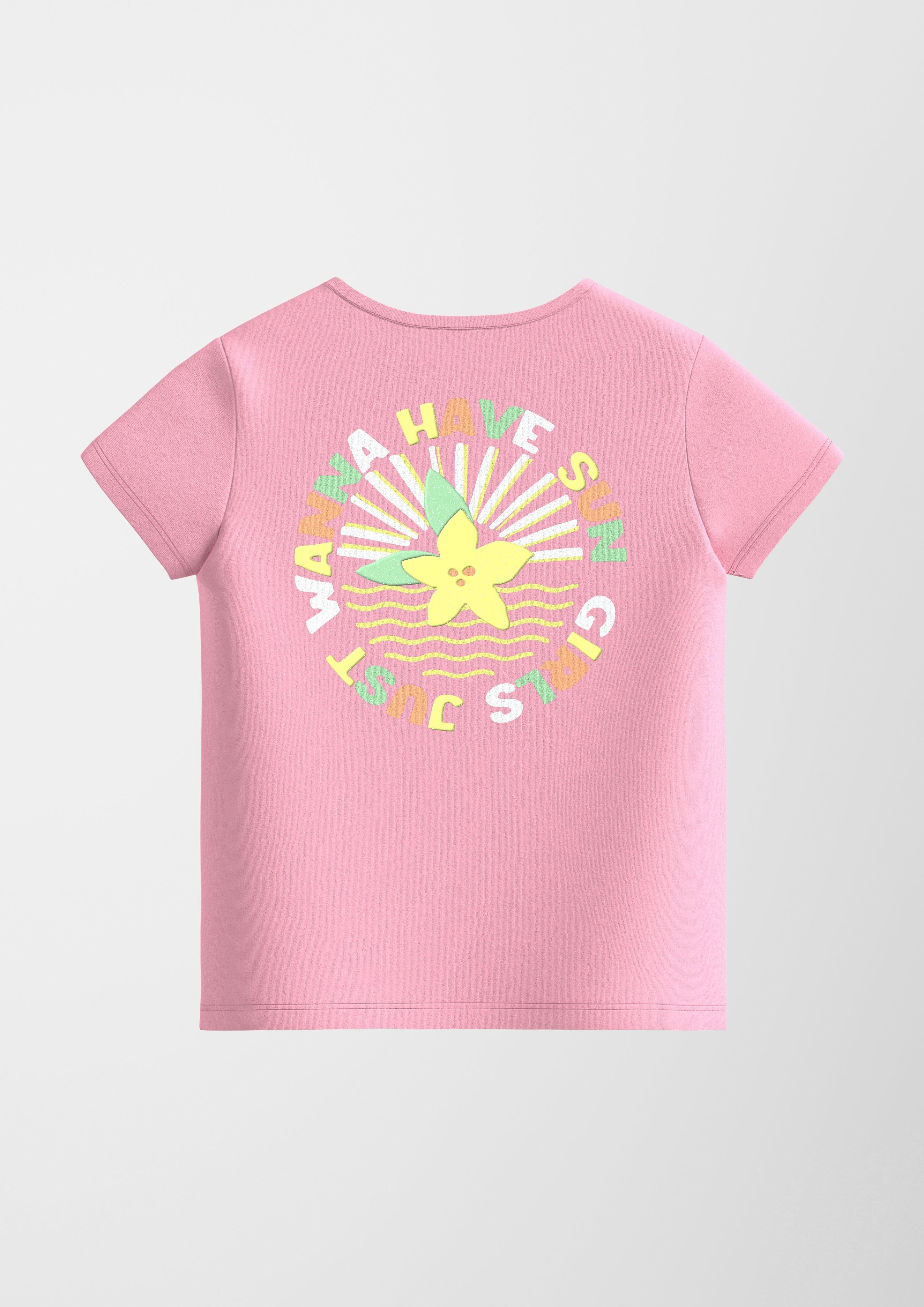 S.Oliver Mädchen Shirt Mit Glitzerprint & Puffärmeln - Weiches Langarmshirt Mit Druckknöpfen
