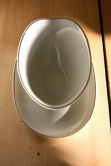 Serviere Soßen und Dressings mit Stil! Diese STOBAZA Sauciere aus weißer Keramik mit elegantem Goldrand macht jedes Essen zum Restaurant-Erlebnis. Perfekt für warme Soßen, kalte Dressings, Sirup oder Gewürze - der Deckel hält alles frisch und warm. Super für zu Hause, aber auch professionell in Hotel und Restaurant einsetzbar. Die praktische Ausgießer-Form macht das Servieren kleckerfrei, und das schicke Design ist ein echter Hingucker auf jedem Tisch. Ein tolles Geschenk für Einweihungspartys oder für alle, die gerne kochen und Gäste bewirten. Einfach in der Spülmaschine zu reinigen (am besten von Hand für längere Haltbarkeit des Goldrands). Mach deine Tischdekoration komplett mit dieser wunderschönen Sauciere - deine Gäste werden begeistert sein!