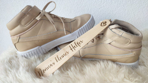 Wie genial ist das denn? Ein Schuhlöffel, der nicht nur deinen Rücken schont, sondern auch noch persönlich graviert ist! Mit 65cm Länge musst du dich nicht mehr bücken - einfach den Fuß rein und schon gleitet der Schuh an. Perfekt für alle, die Rückenprobleme haben oder einfach praktisch veranlagt sind. \\n\\nDu kannst den Löffel mit Namen, Datum oder einem coolen Spruch gravieren lassen - ein total persönliches Geschenk für Oma, Opa oder den besten Kumpel. Hergestellt in Deutschland aus stabilem Kunststoff, hält er ewig. \\n\\nWarum du diesen Schuhlöffel lieben wirst: \\n- Kein Bücken mehr beim Anziehen \\n- Schont deine Schuhe und Strümpfe \\n- Persönliche Gravur macht ihn einzigartig \\n- Mit Aufhängeöse für praktische Aufbewahrung \\n\\nEgal ob als Geschenk oder für dich selbst - dieser Schuhlöffel macht einfach Laune und erleichtert den Alltag. Und das beste: Er sieht auch noch richtig stylisch aus!