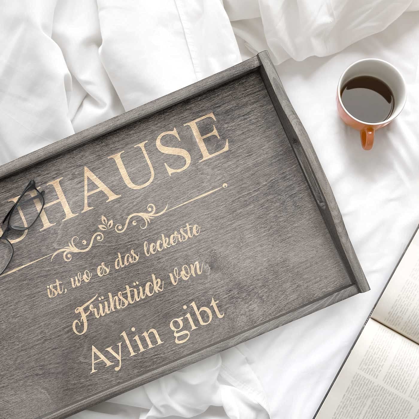 • Maverton Betttablett Mit Gravur - Personalisierter Frühstückstablett Aus Kiefernholz