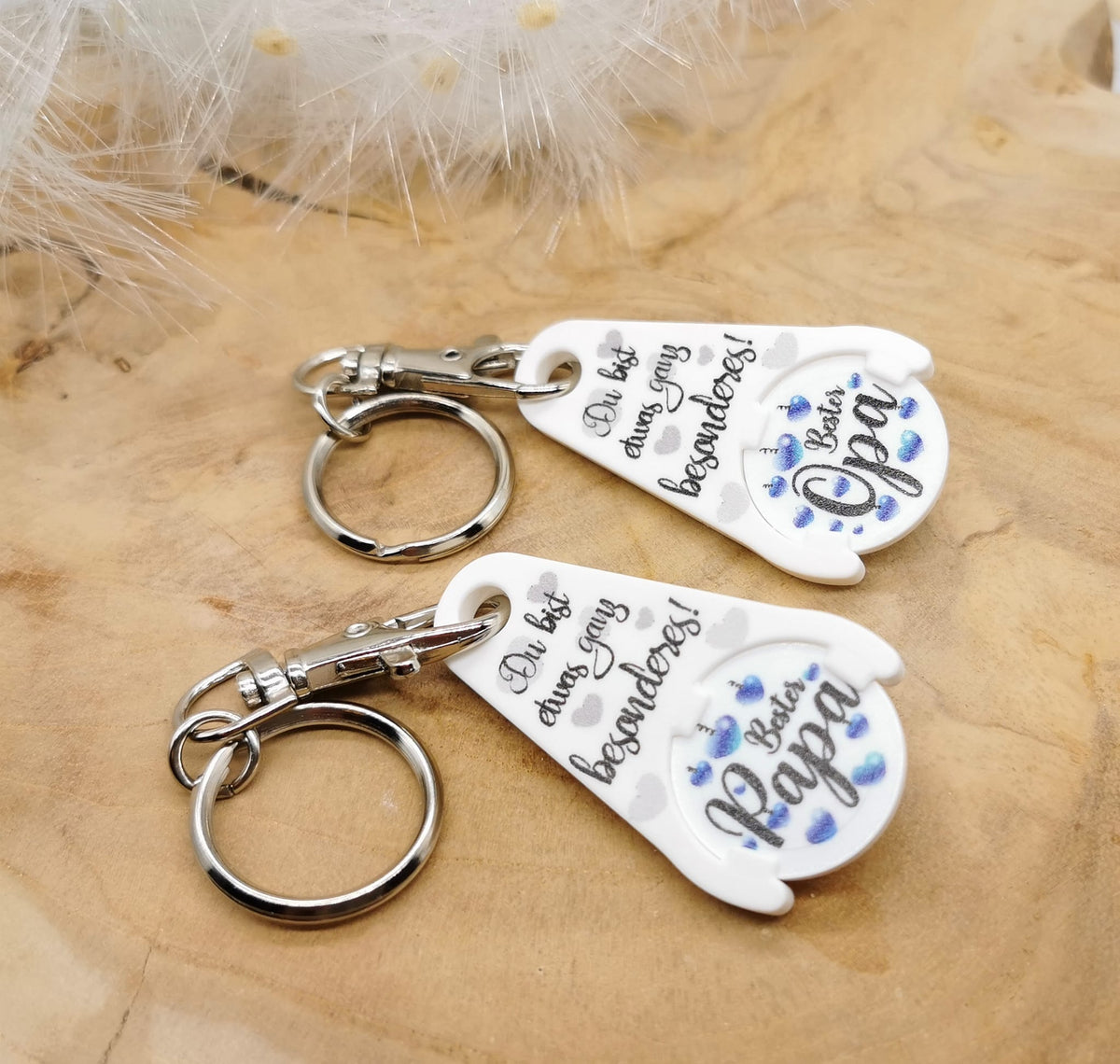 Oh, was für eine geniale Geschenkidee! Diese 3 Einkaufswagenlöser aus Edelstahl sind nicht nur praktisch, sondern auch personalisiert mit süßen Sprüchen wie 'Bester Papa' und 'Glück ist, einen Papa wie dich zu haben'. Jeder Chip ist ca. 6cm lang mit 2,5cm Ringdurchmesser - perfekt für den Schlüsselbund! Einfach in den Münzschlitz stecken, Wagen entriegeln und Chip wieder rausziehen - nie wieder nach Kleingeld suchen! Und das Beste: Sie funktionieren auch als Flaschenöffner - wie praktisch ist das denn? Mit Kleeblatt- und Herzchen-Motiven bringen sie nicht nur Glück, sondern zeigen auch deine Zuneigung. Im Set mit 3 Stoffbeuteln verpackt - ideal zum Verschenken. Perfekt für Weihnachten, Geburtstage, Vatertag oder einfach mal so als Dankeschön. Dein Papa oder Opa wird bei jedem Einkauf an dich denken - versprochen!