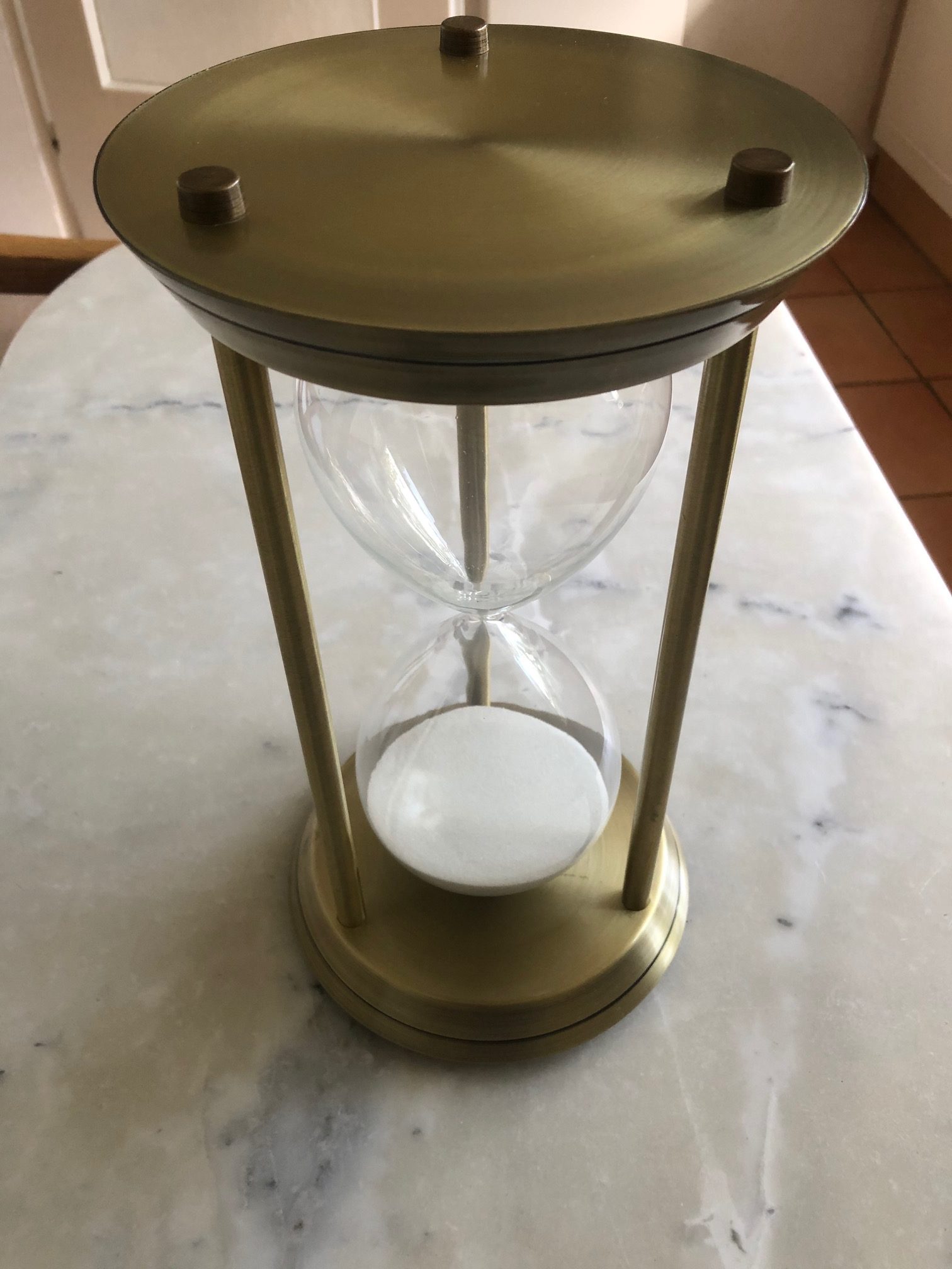 Ein zeitloses Geschenk mit persönlicher Note! Diese wunderschöne Sanduhr aus stabilem Messing wird mit deinem individuellen Wunschtext graviert. Bis zu fünf Zeilen sind möglich - ob Name, Gruß oder besonderer Spruch. Mit hellem Sand gefüllt - ein Durchlauf dauert ca. 3 Minuten. Maße: Höhe 11 cm, Durchmesser 5 cm, Gewicht 120 Gramm. Inklusive hochwertigem Lederetui für sichere Aufbewahrung. Die Laser-Gravur ist dauerhaft und nicht entfernbar. Perfekt als Geschenk für Hochzeit, Taufe, Geburtstag, Valentinstag oder einfach als Zeichen der Wertschätzung. Ein symbolträchtiges Accessoire, das zeigt, wie wertvoll gemeinsame Zeit ist. Einfach Wunschtext angeben und ein einzigartiges, persönliches Geschenk erhalten. Qualitativ hochwertige Verarbeitung für lange Freude. Mehr als nur eine Sanduhr - ein bleibendes Erinnerungsstück mit emotionalem Wert!