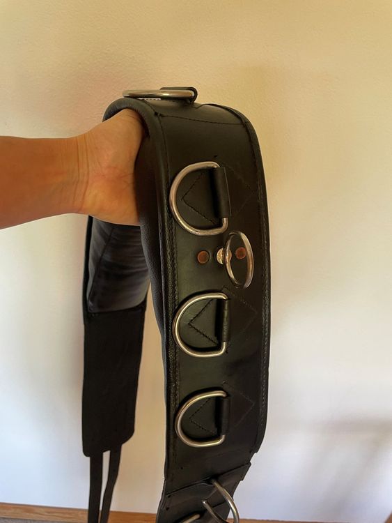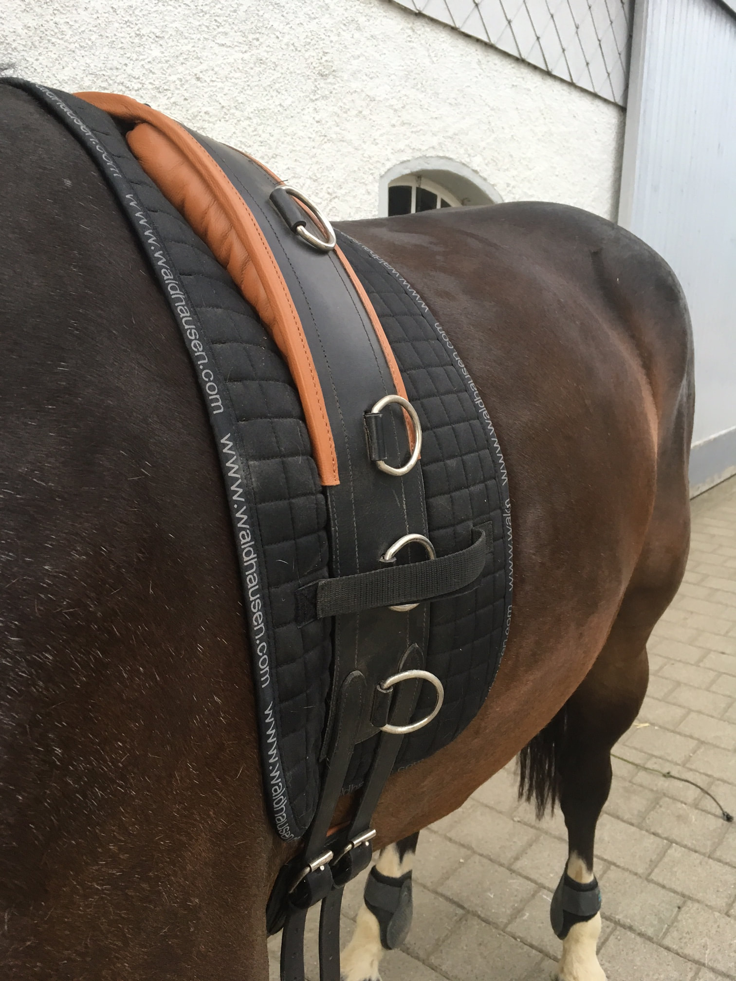 Perfekt für die ersten Reitversuche! Dieser Longiergurt von Brama West gibt Kindern sicheren Halt beim Longieren. Aus robustem Canvas-Material mit einem praktischen Stehgriff aus Leder. Der Griff ist super zum Festhalten und gibt Sicherheit ohne Sattel. Mit vielen Ringen um Hilfszügel zu befestigen. Schön schmal geschnitten - stört nicht an den Knien. Ideal für Reitanfänger und Kinder. Macht das Longieren sicherer und angenehmer für Pferd und Reiter. Gut verarbeitet und langlebig. Ein Muss für jeden Reitunterricht! Ob in der Reitschule oder privat - mit diesem Gurt klappt's bestimmt.